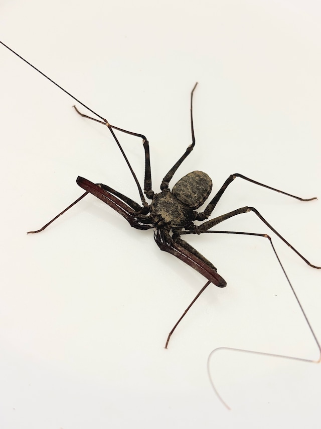 タイに生息するウデムシ。大きさは最大で体長約3cm。 体長約3cmの個体をランダムに発送させていただきます。 ウデムシの中でも細く長いウデを持ちます。 長いウデで器用に餌をとらえます。 多湿を好みますが、蒸れには弱いので注意してください。 高さのあるケージで飼育をお勧めします!