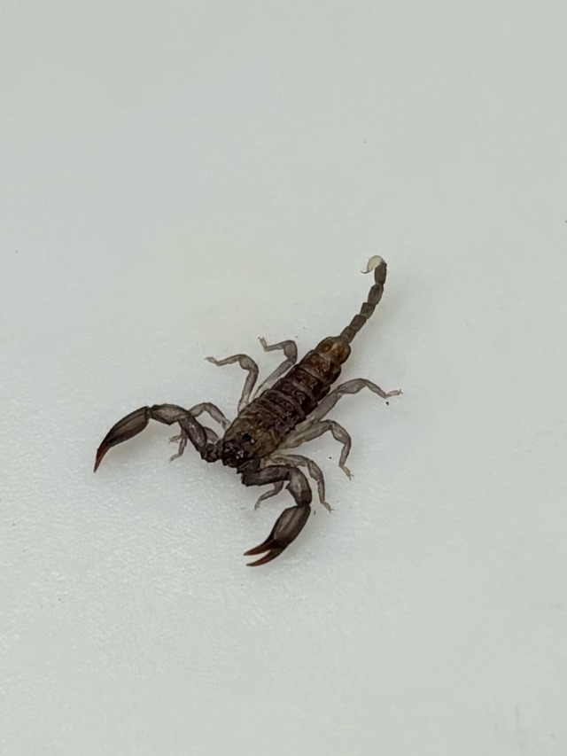 八重山諸島に生息するサソリ。大きさは最大で体長約25mm。 体長約1.5cmの画像の個体を発送します。 沖縄に生息する国産サソリ。 樹皮の裏などによく張り付いています。 単為生殖することが知られています。 餌は小型の昆虫を与えています。