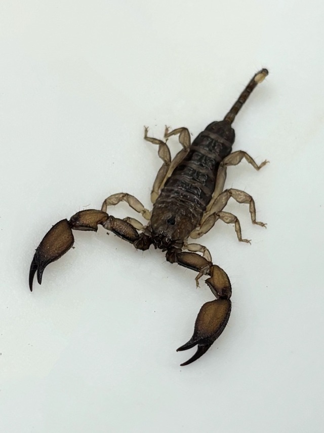 八重山諸島に生息するサソリ。大きさは最大で体長約25mm。 体長約2cmの画像の個体を発送します。 沖縄に生息する国産サソリ。 樹皮の裏などによく張り付いています。 単為生殖することが知られています。 餌は小型の昆虫を与えています。