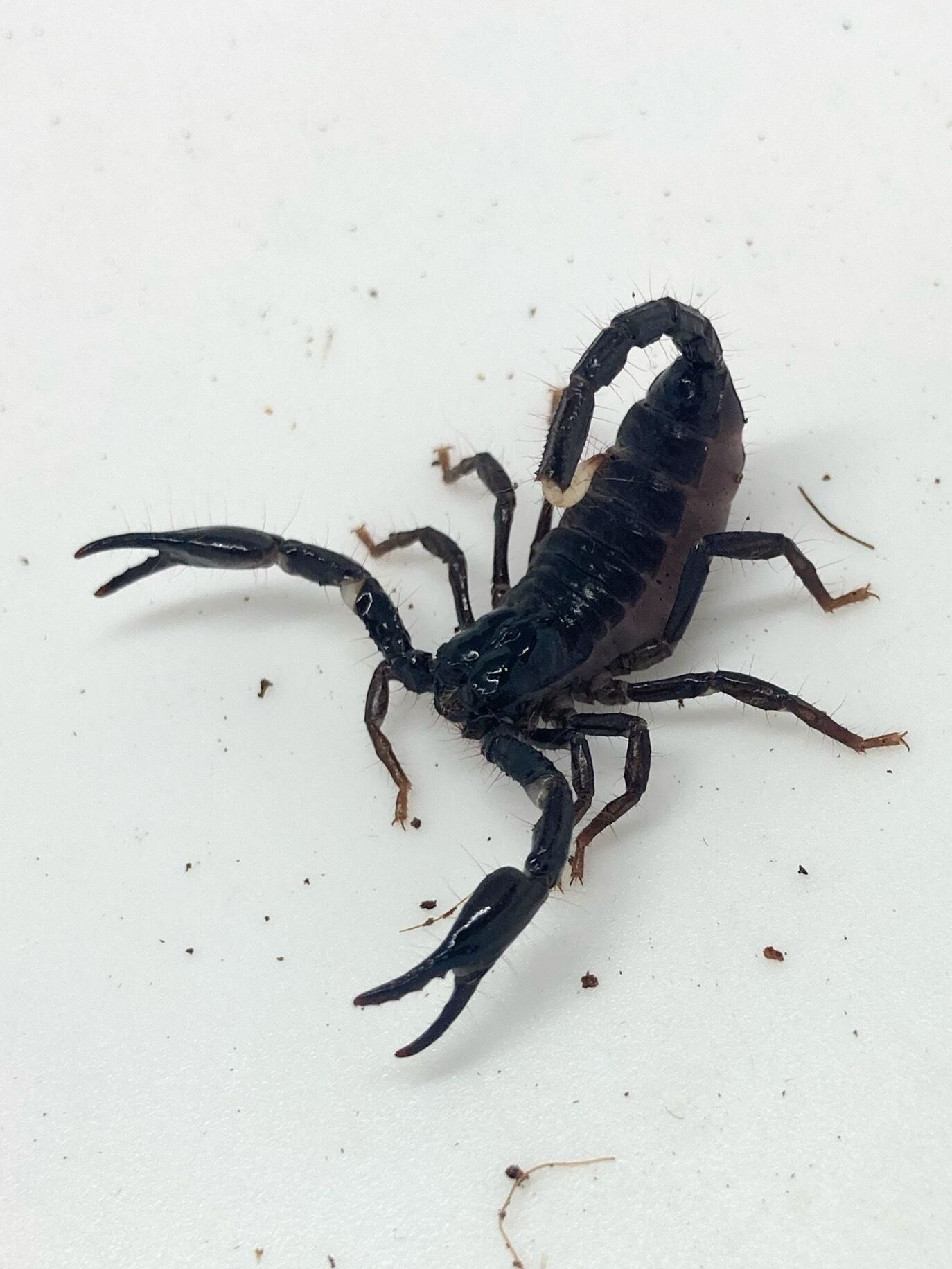 一般的なアジアンフォレストスコーピオンの中でハサミが長く、角張っているのが特徴です。