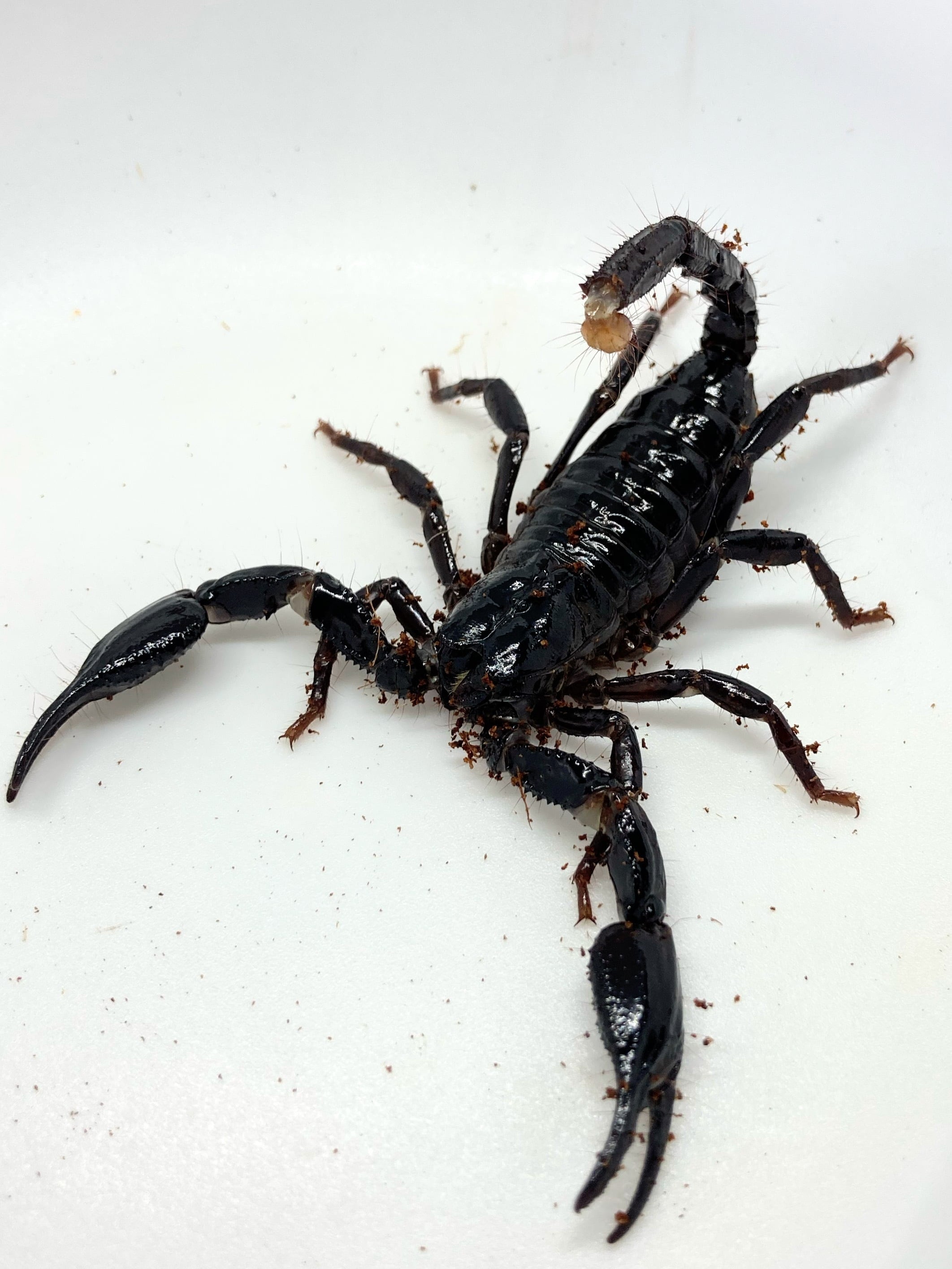 一般的なアジアンフォレストスコーピオンの中でハサミが長く、角張っているのが特徴です。