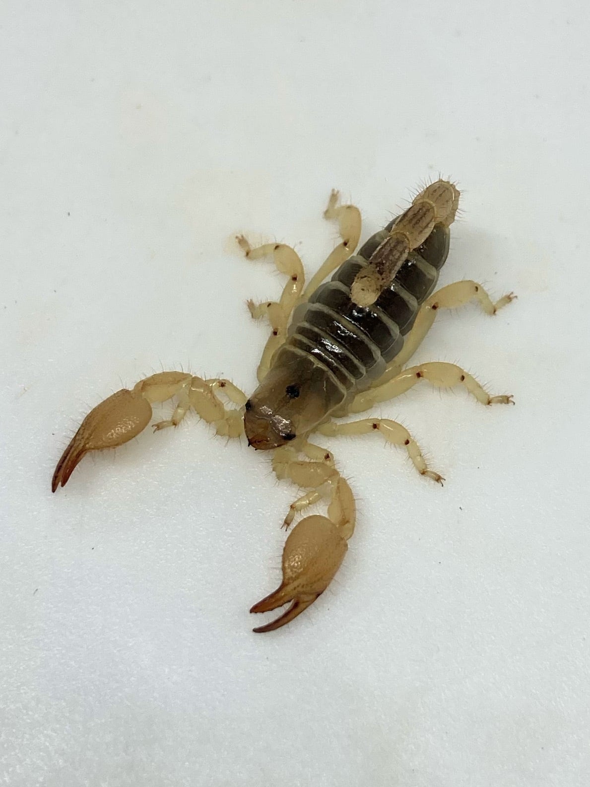 北アフリカに生息する黄色いサソリ。大きさは最大で全長約6cm。