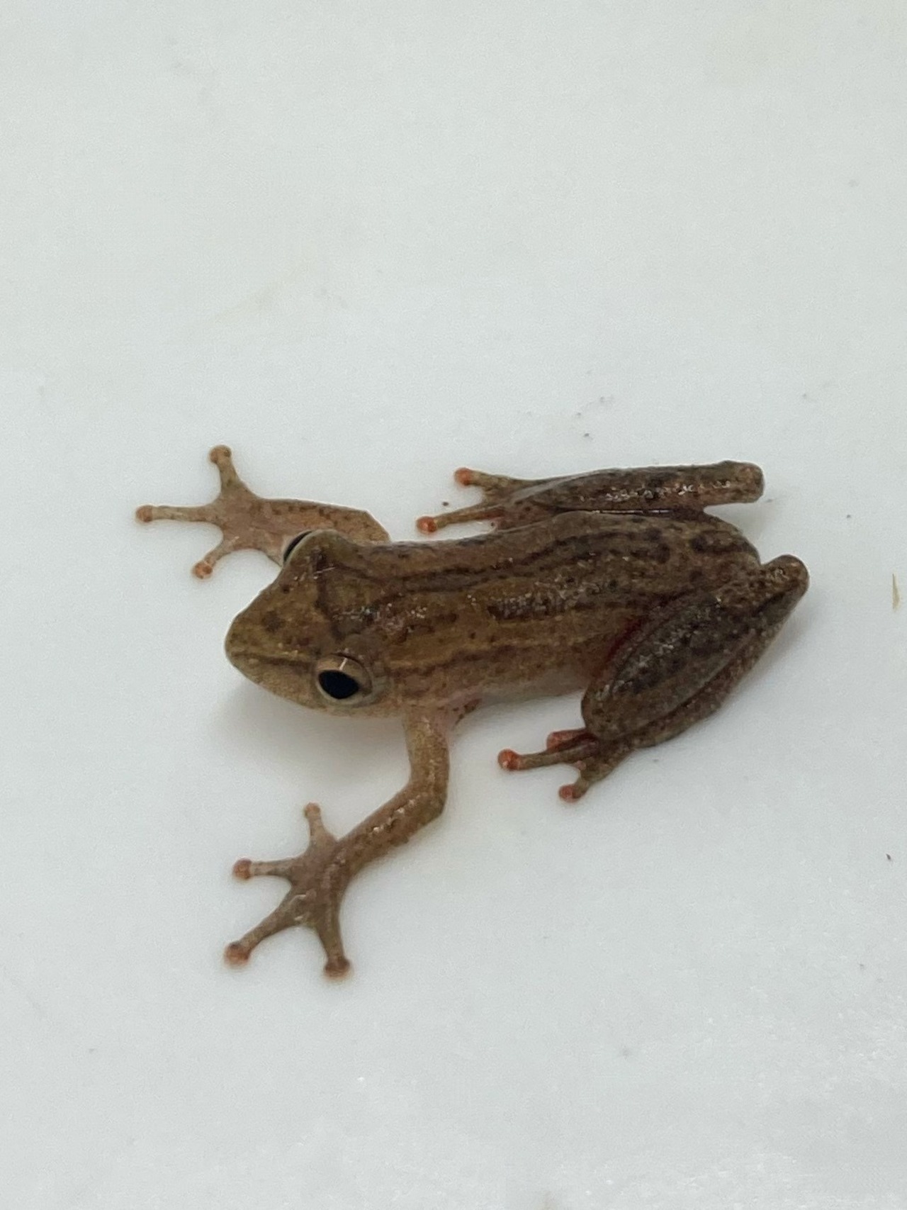 画像1のカエルは茶色い体に黒い縦縞が入り大変可愛らしく