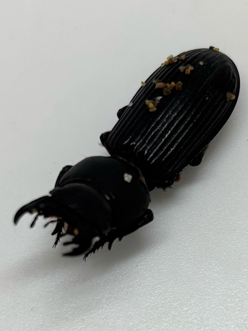 海岸や河原の砂地に生息する大型の肉食性オサムシ。大きさは最大で体長約3cm。