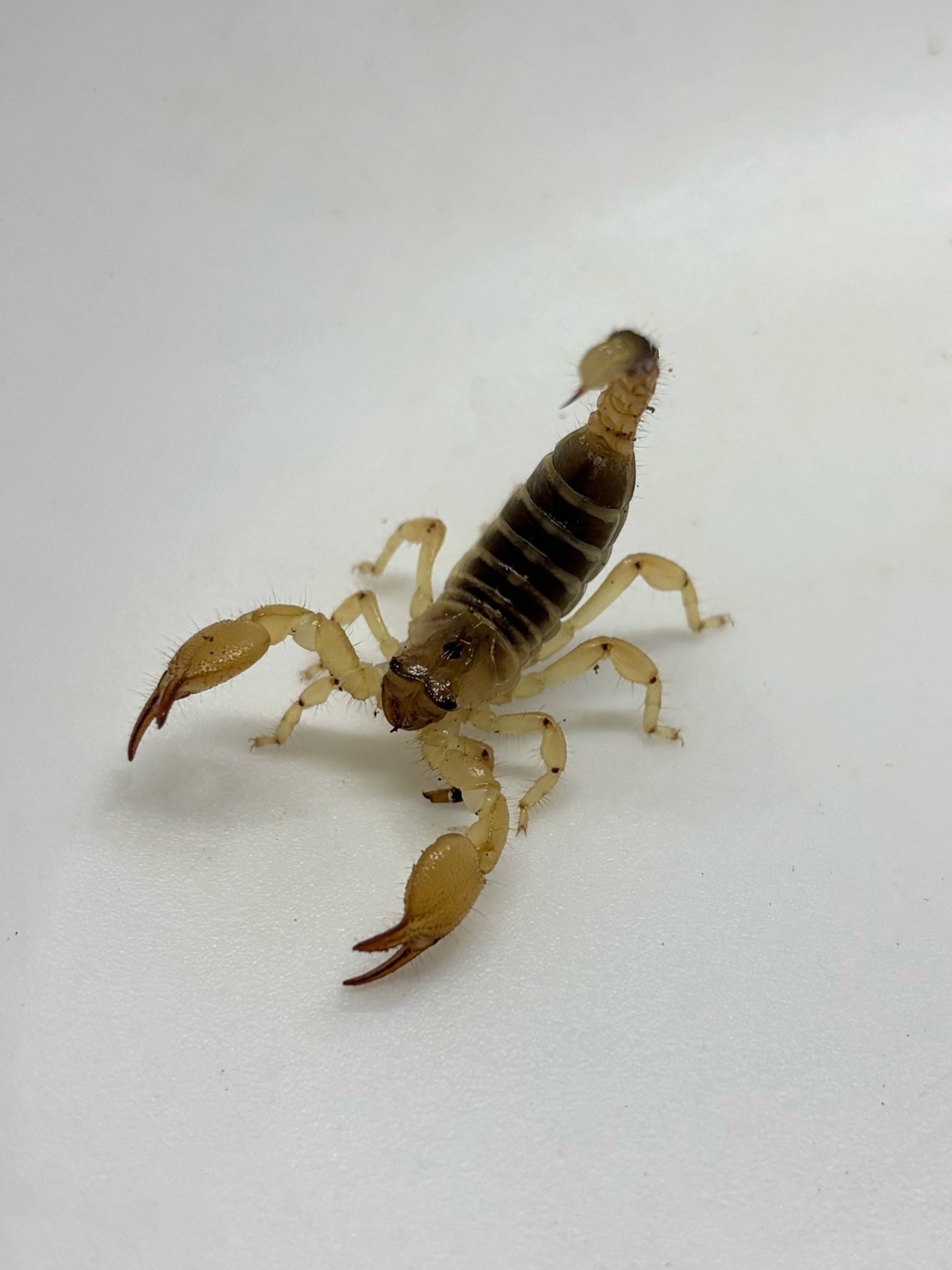北アフリカに生息する黄色いサソリ。大きさは最大で全長約6cm。