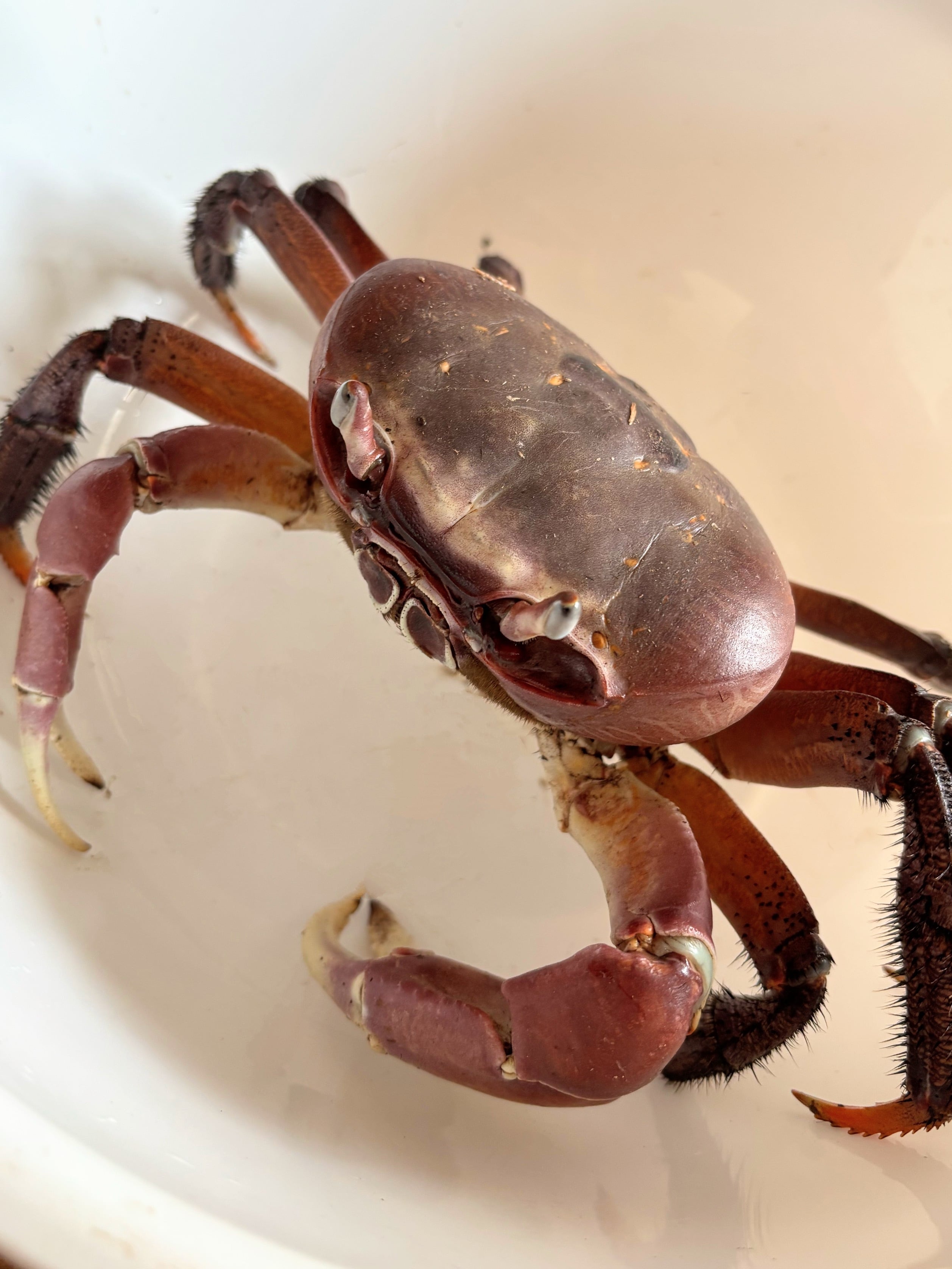 ヤシガニほど好戦的ではない気がしますが、ハサミは大きく力も強いので取り扱いには注意してください。