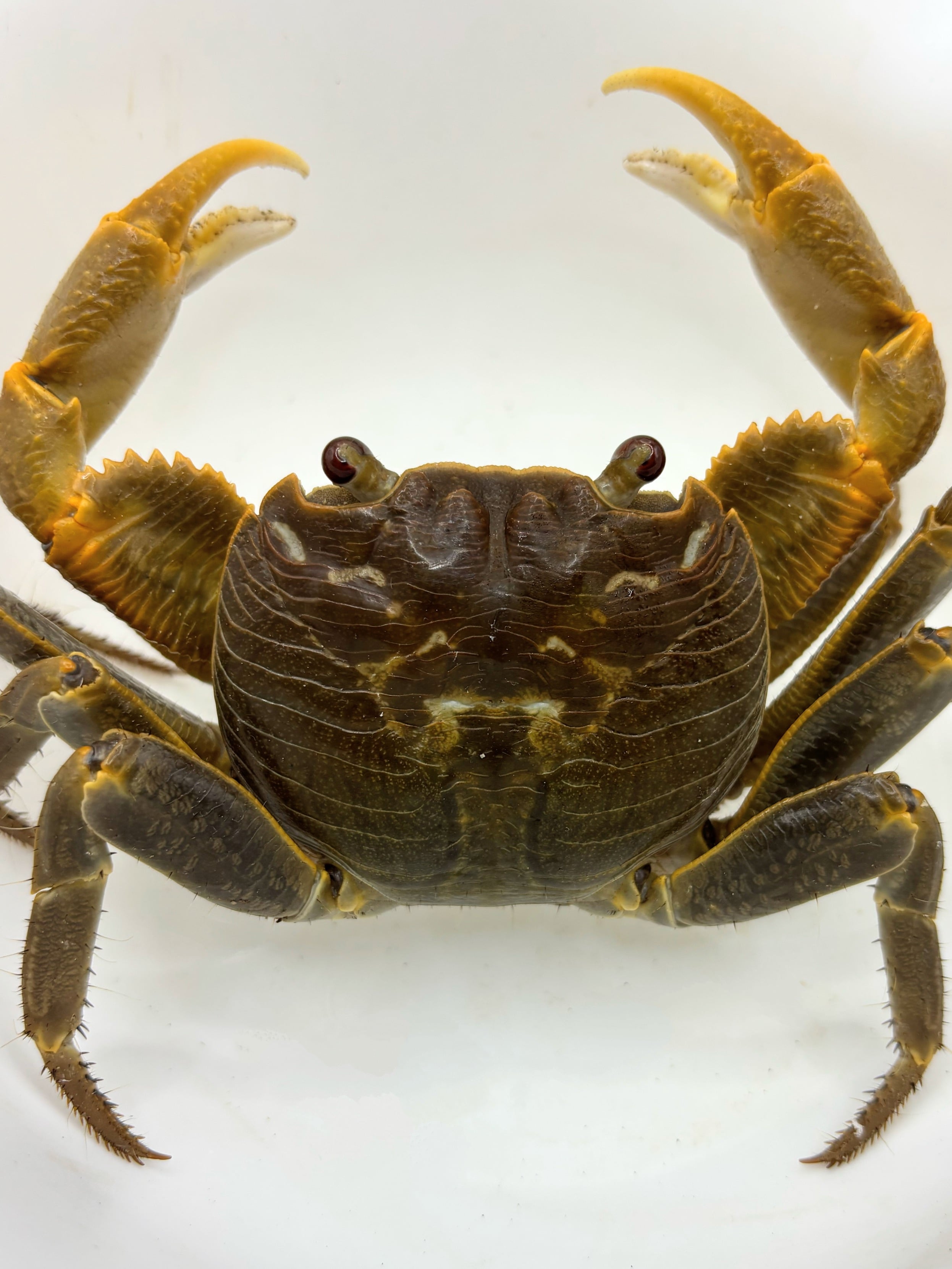 淡い飴色の体が美しい、陸生傾向の強いカニ。でかいです!!