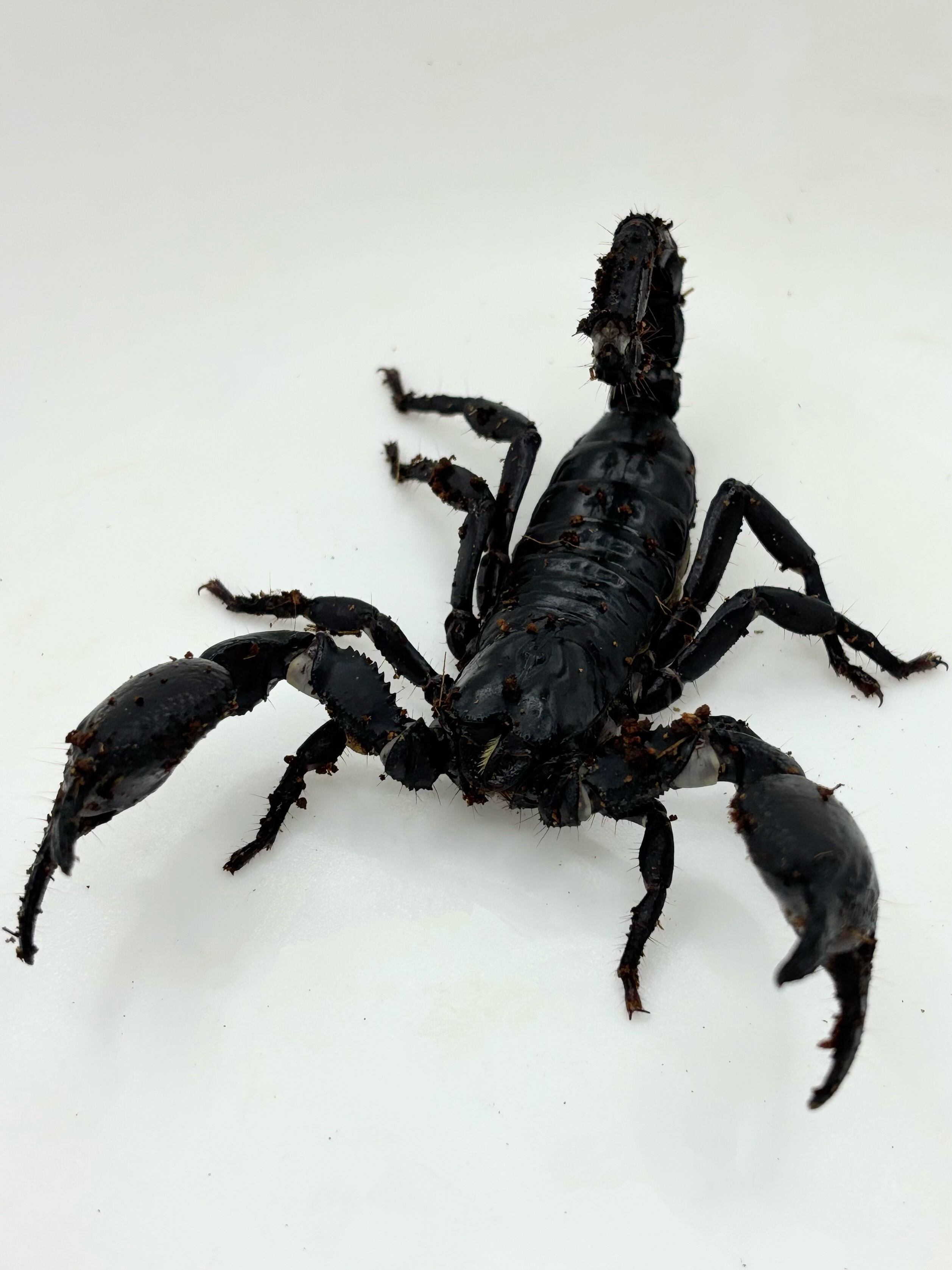 アジアンフォレストスコーピオンとして総称されるサソリの1種。大きさは最大で全長約15cm。