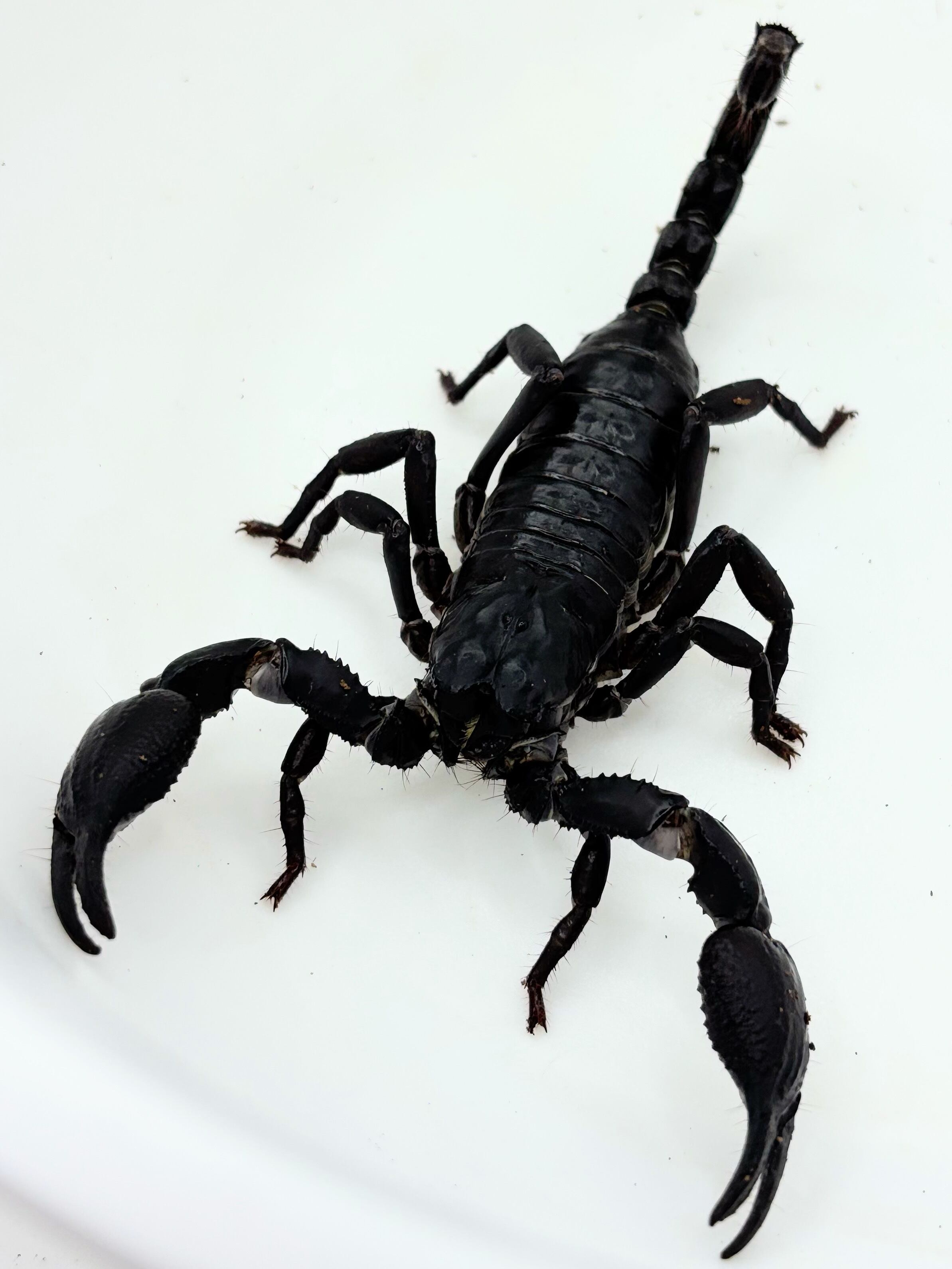 アジアンフォレストスコーピオンとして総称されるサソリの1種。大きさは最大で全長約15cm。