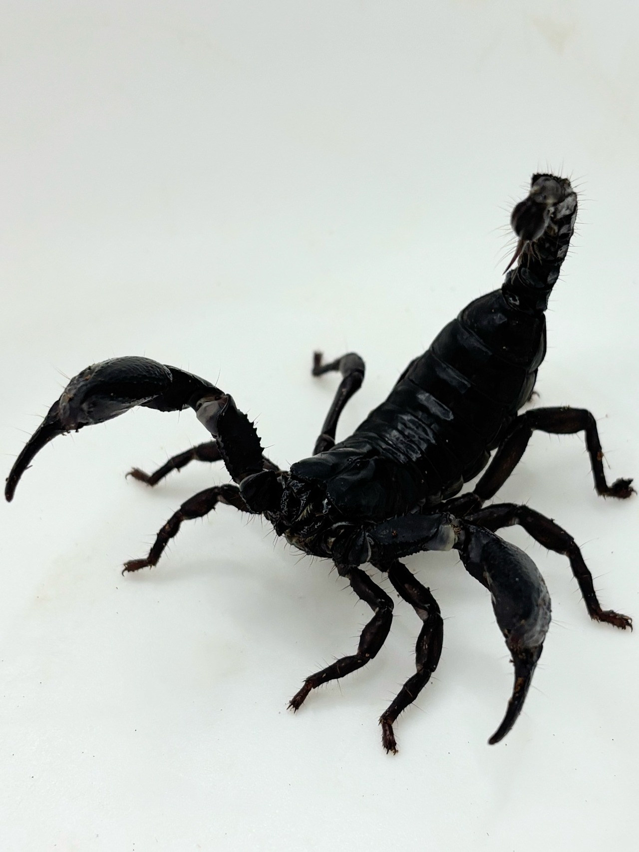 アジアンフォレストスコーピオンとして総称されるサソリの1種。大きさは最大で全長約15cm。