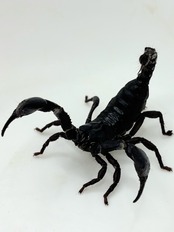 大きなハサミとやや茶色みがかったボディが特徴の大型のサソリです。