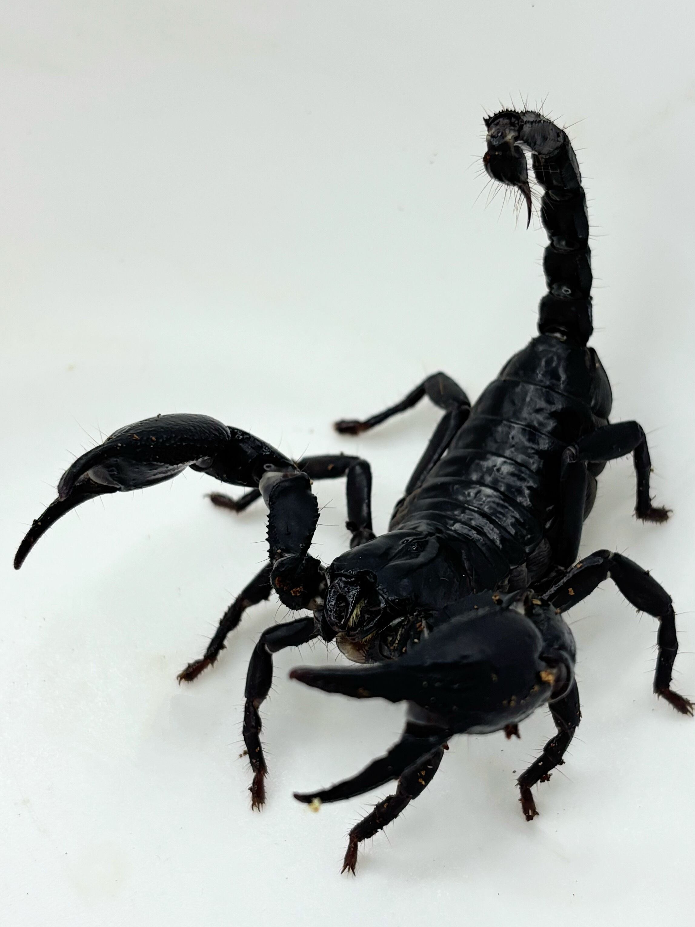 アジアンフォレストスコーピオンとして総称されるサソリの1種。大きさは最大で全長約15cm。