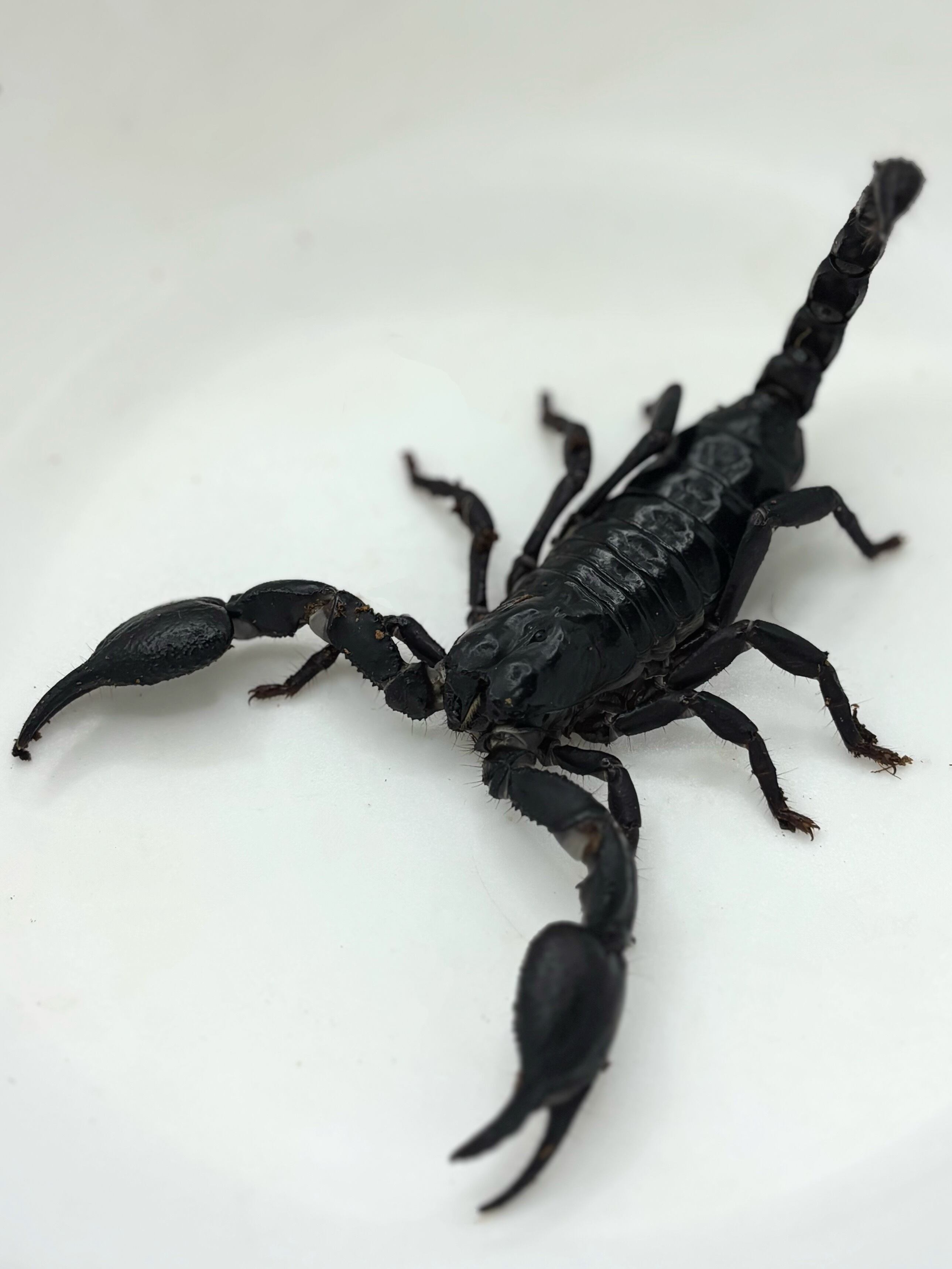 アジアンフォレストスコーピオンとして総称されるサソリの1種。大きさは最大で全長約15cm。
