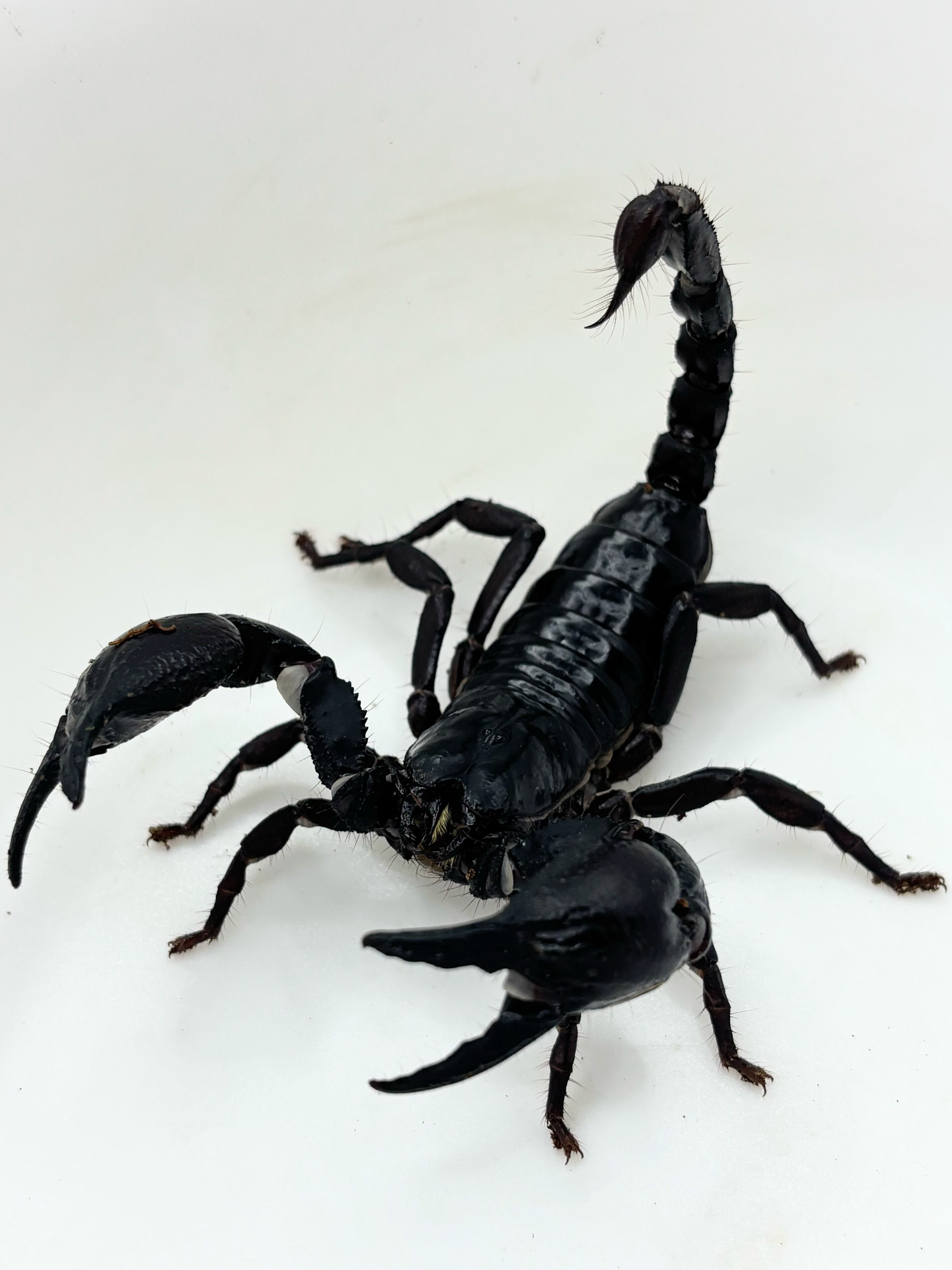 アジアンフォレストスコーピオンとして総称されるサソリの1種。大きさは最大で全長約15cm。
