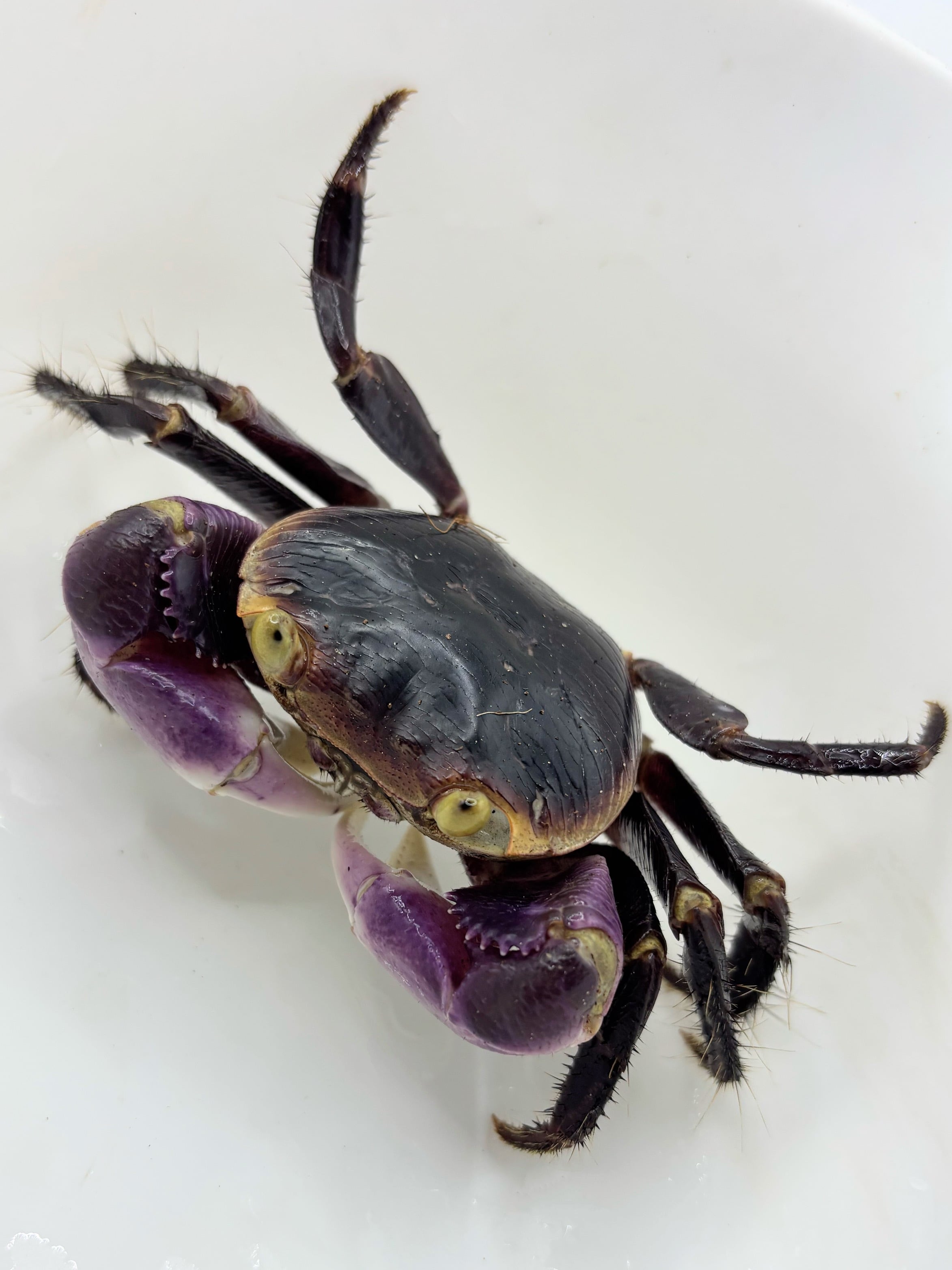 伊豆諸島や四国以南の暖かい地域に生息する陸生のカニ。大きさは最大で甲幅約4cm。