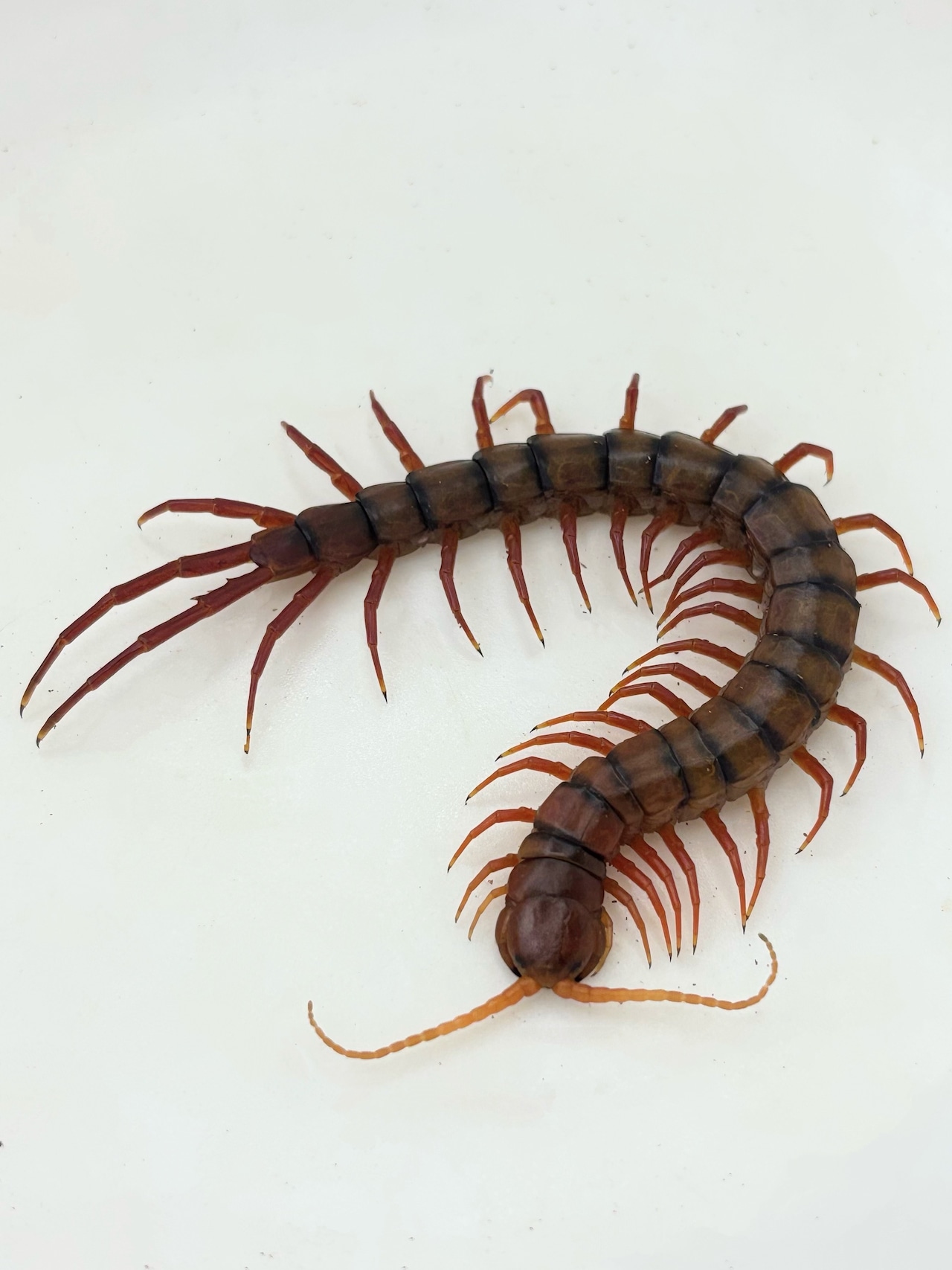 赤ともオレンジともいえるカラーリングがとても美しいムカデです。