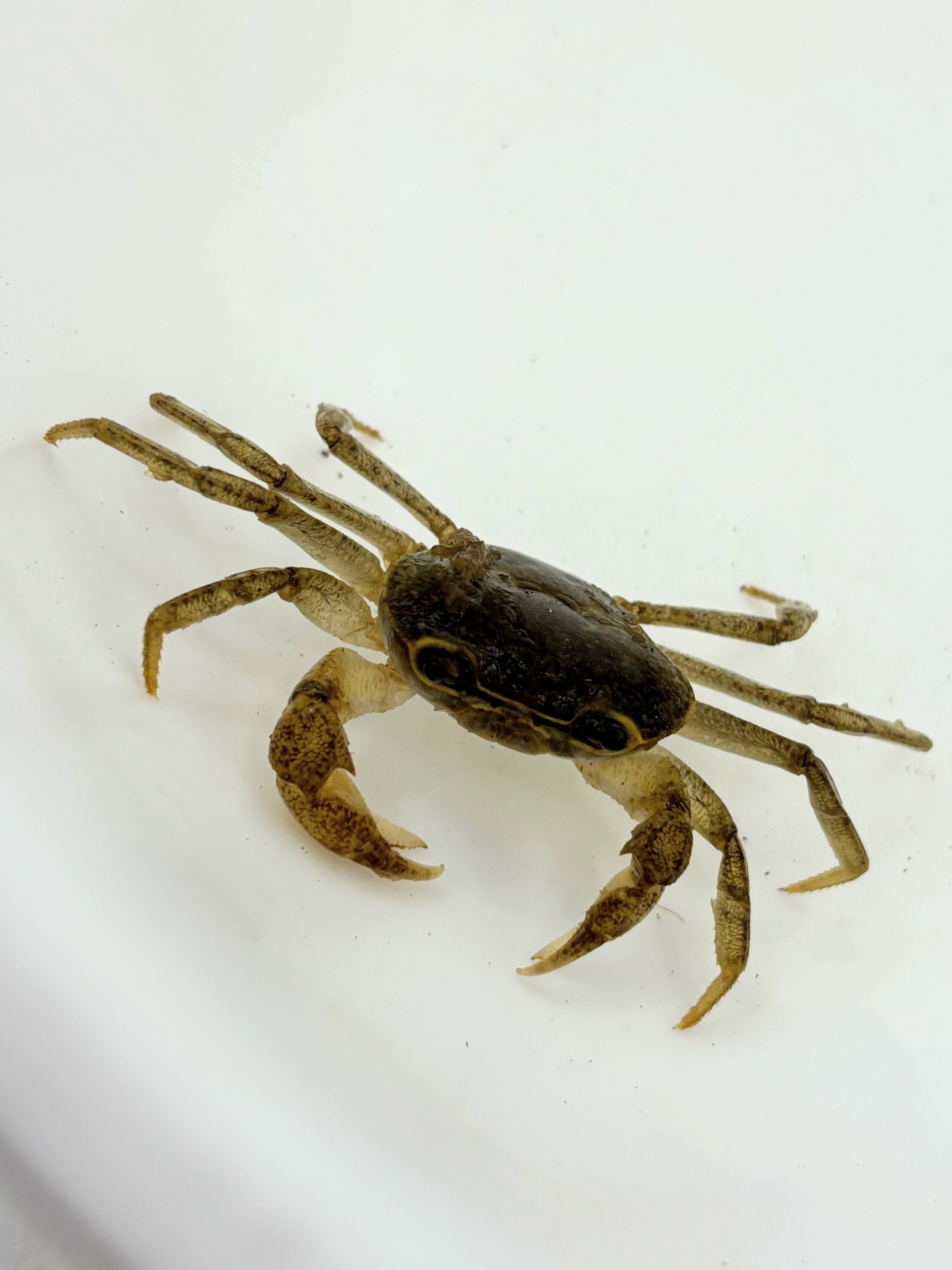 河川に生息するサワガニですが、違いはその大きさ。2cmくらいの個体は一般的なサワガニと区別がつきづらいですが、大きいものは脚も長くなり、迫力が出てきます。