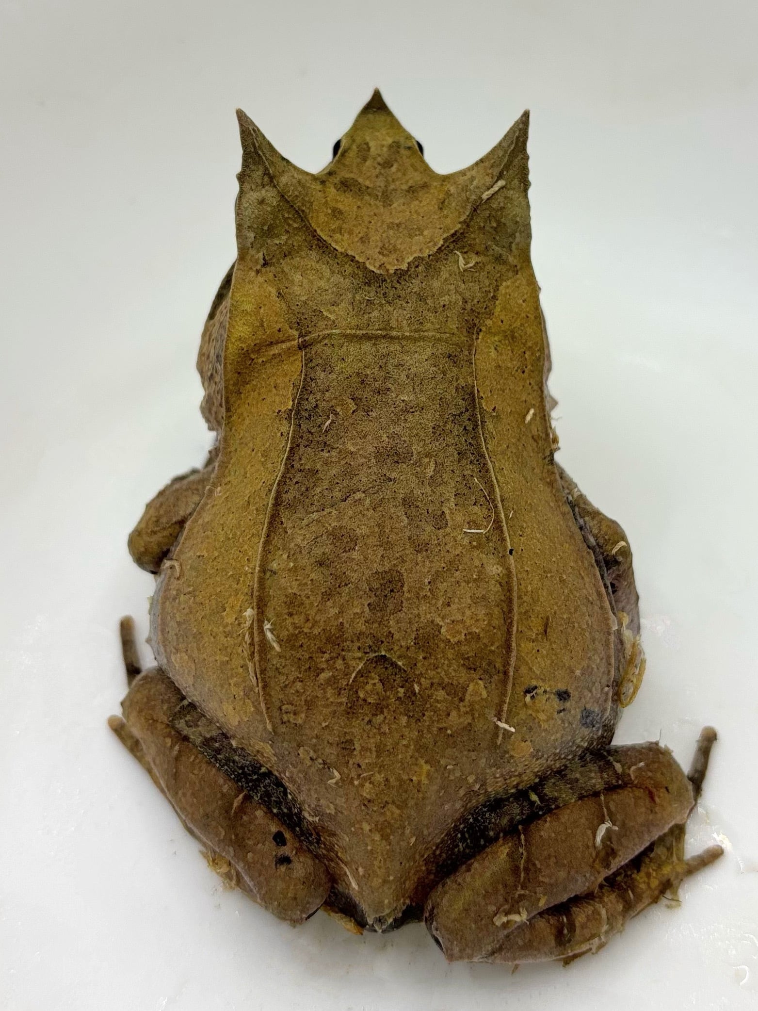 枯れ葉に擬態した姿がおもしろいカエル。