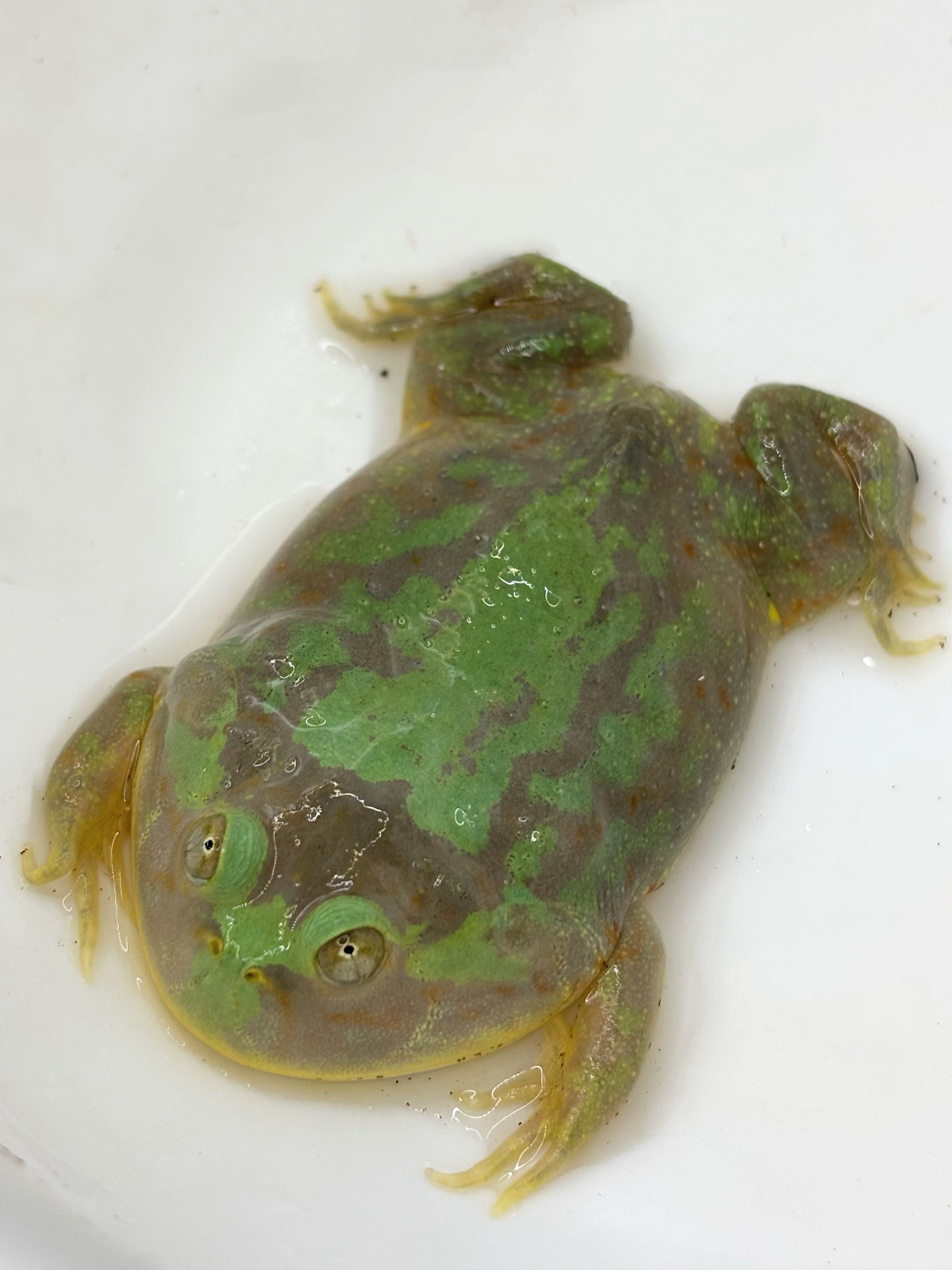 その大きな口で魚などを捕食しますが、人工飼料にも餌付くので大変飼育しやすいカエルです。