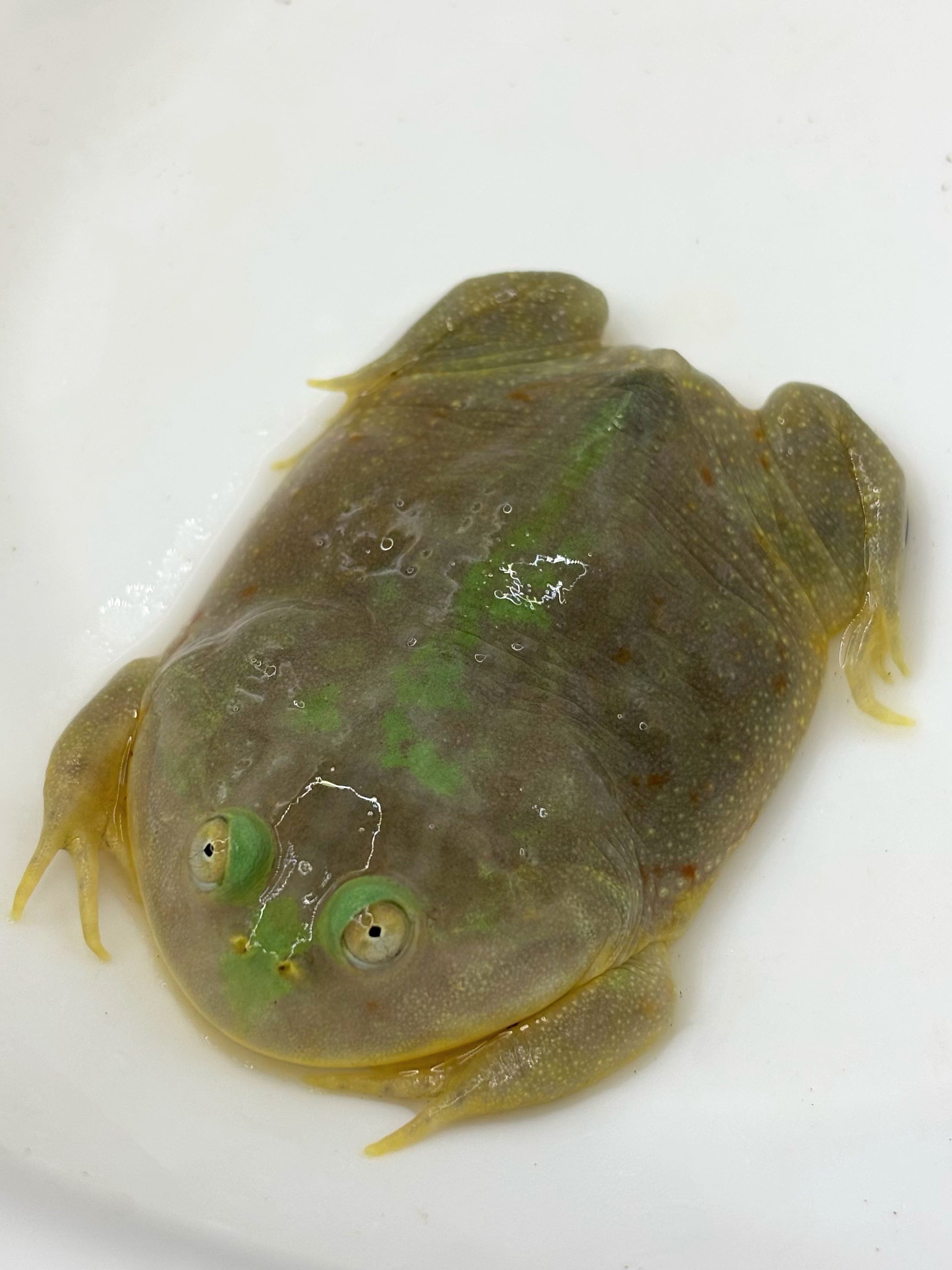 その大きな口で魚などを捕食しますが、人工飼料にも餌付くので大変飼育しやすいカエルです。