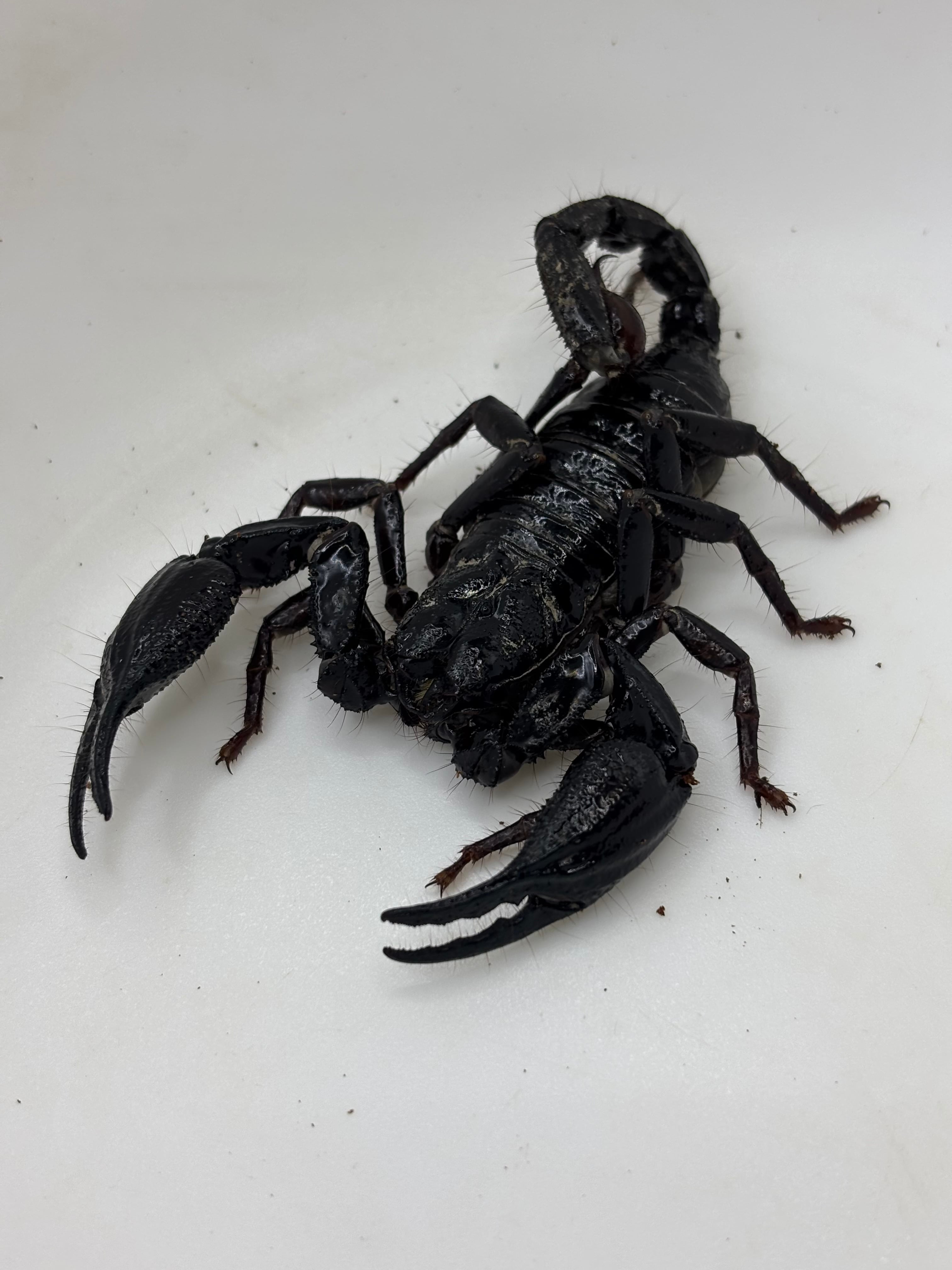 アジアンフォレストスコーピオンと総称されていたサソリの一種で、ハサミが長く伸びるのが特徴。