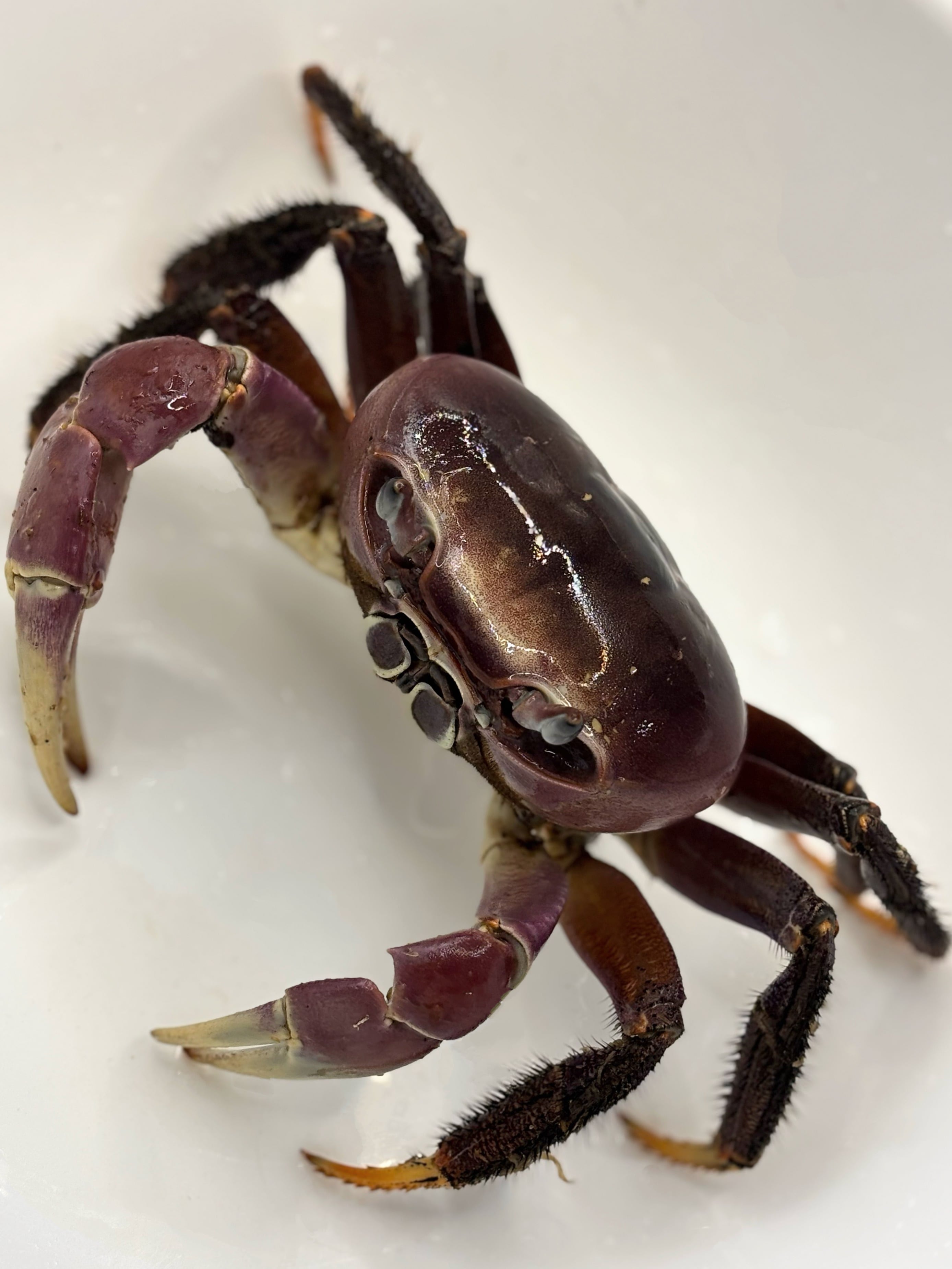 ヤシガニほど好戦的ではない気がしますが、ハサミは大きく力も強いので取り扱いには注意してください。