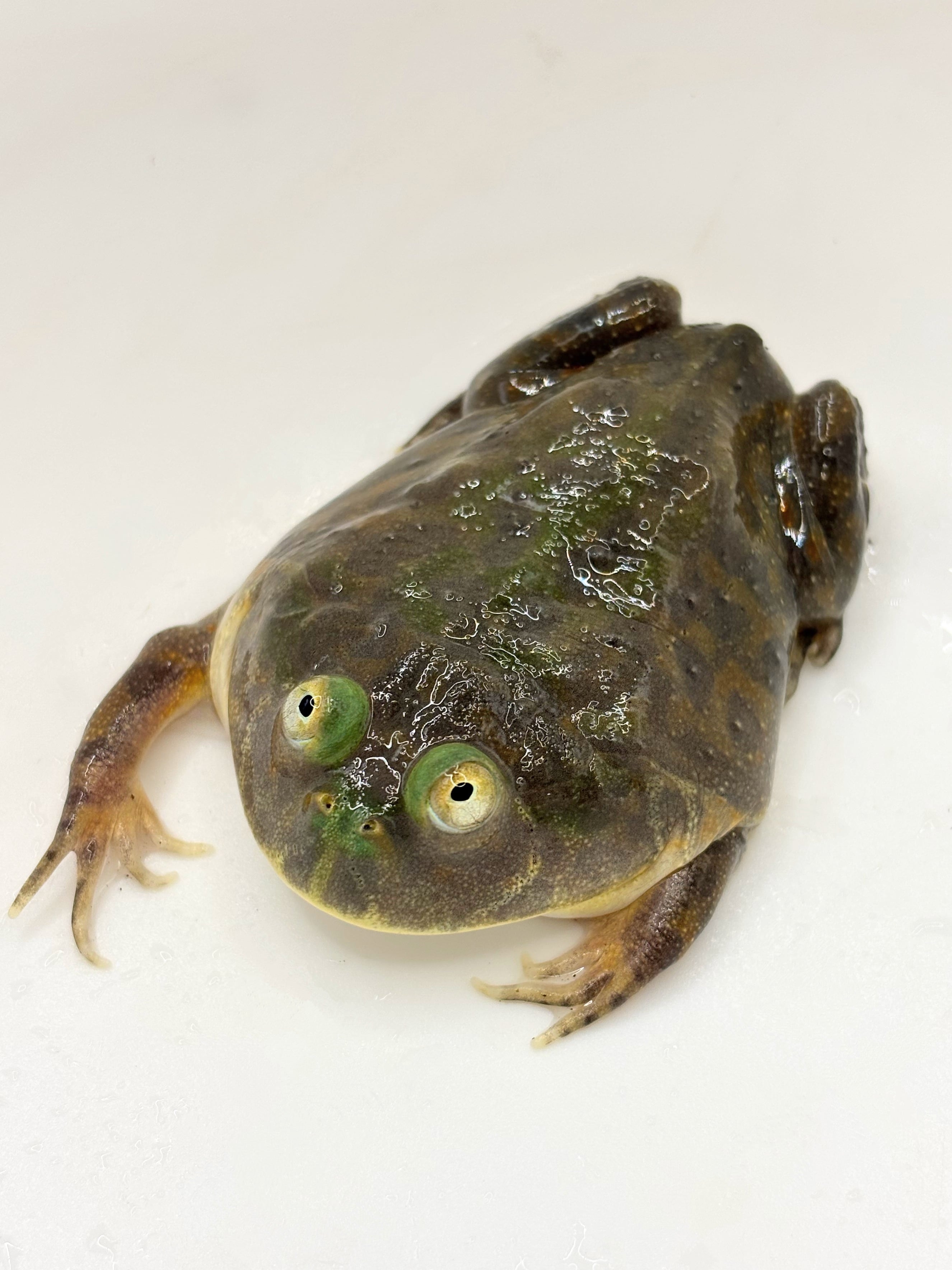 その大きな口で魚などを捕食しますが、人工飼料にも餌付くので大変飼育しやすいカエルです。