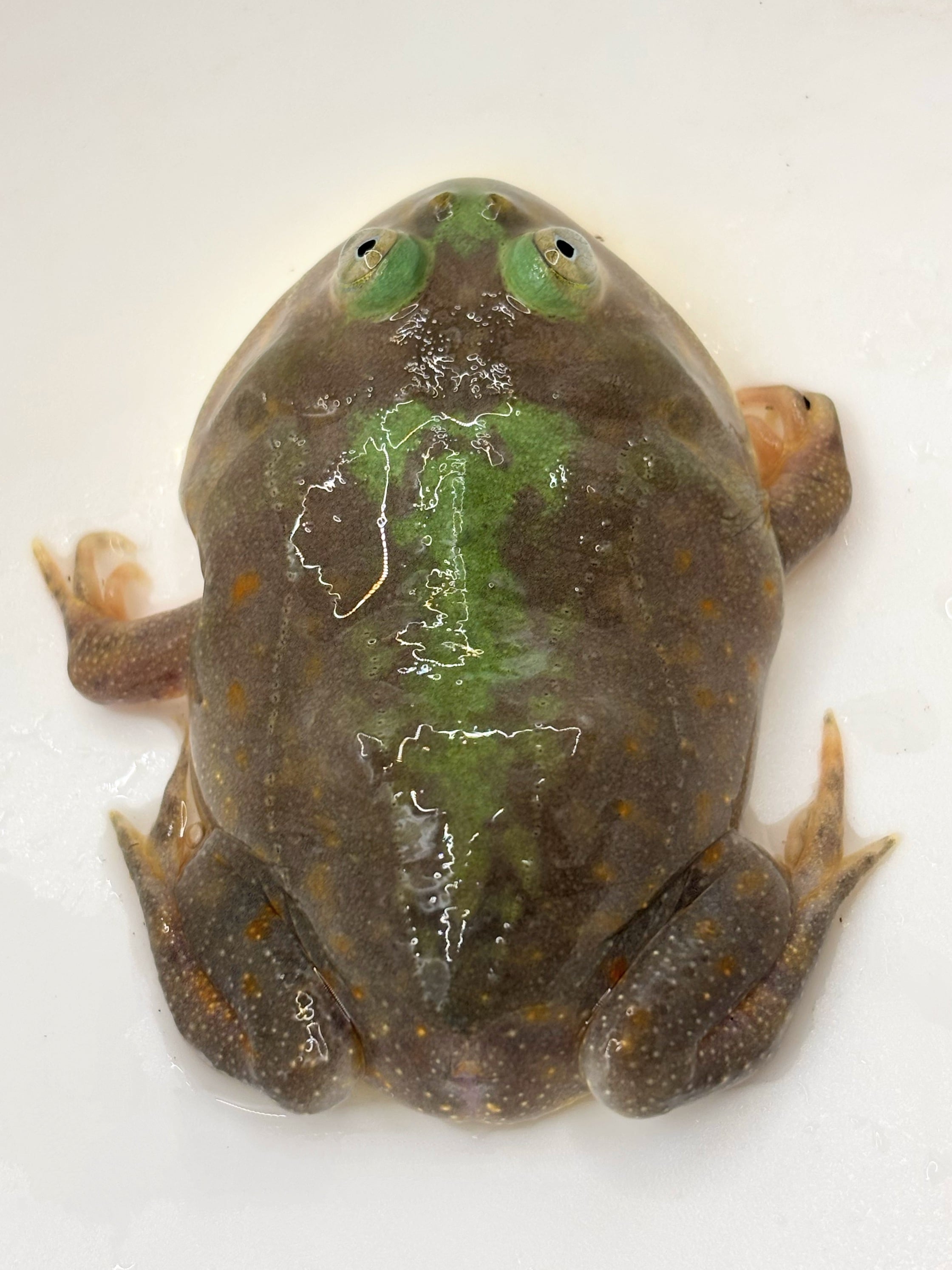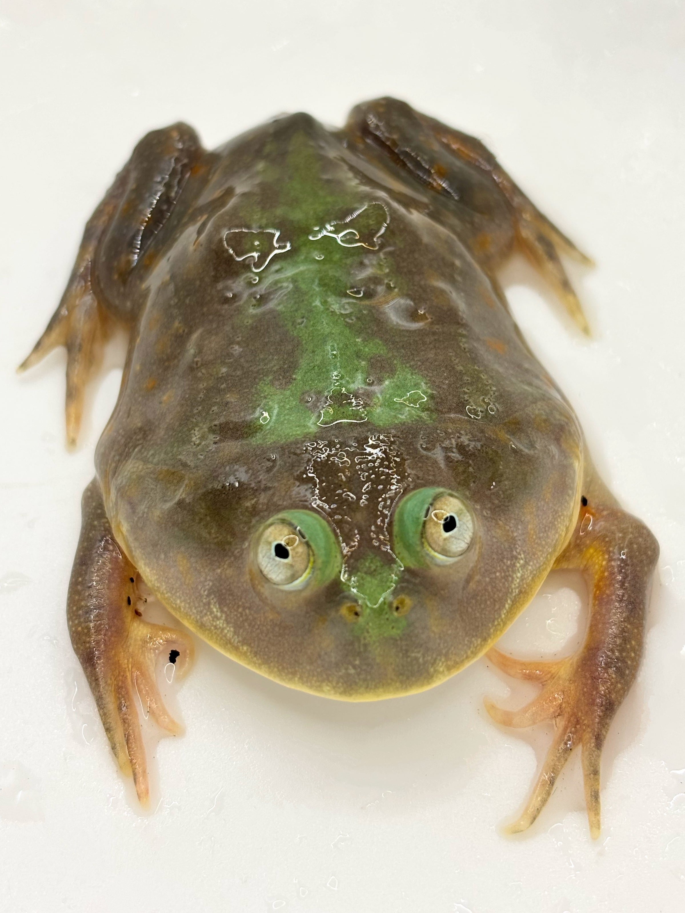 その大きな口で魚などを捕食しますが、人工飼料にも餌付くので大変飼育しやすいカエルです。
