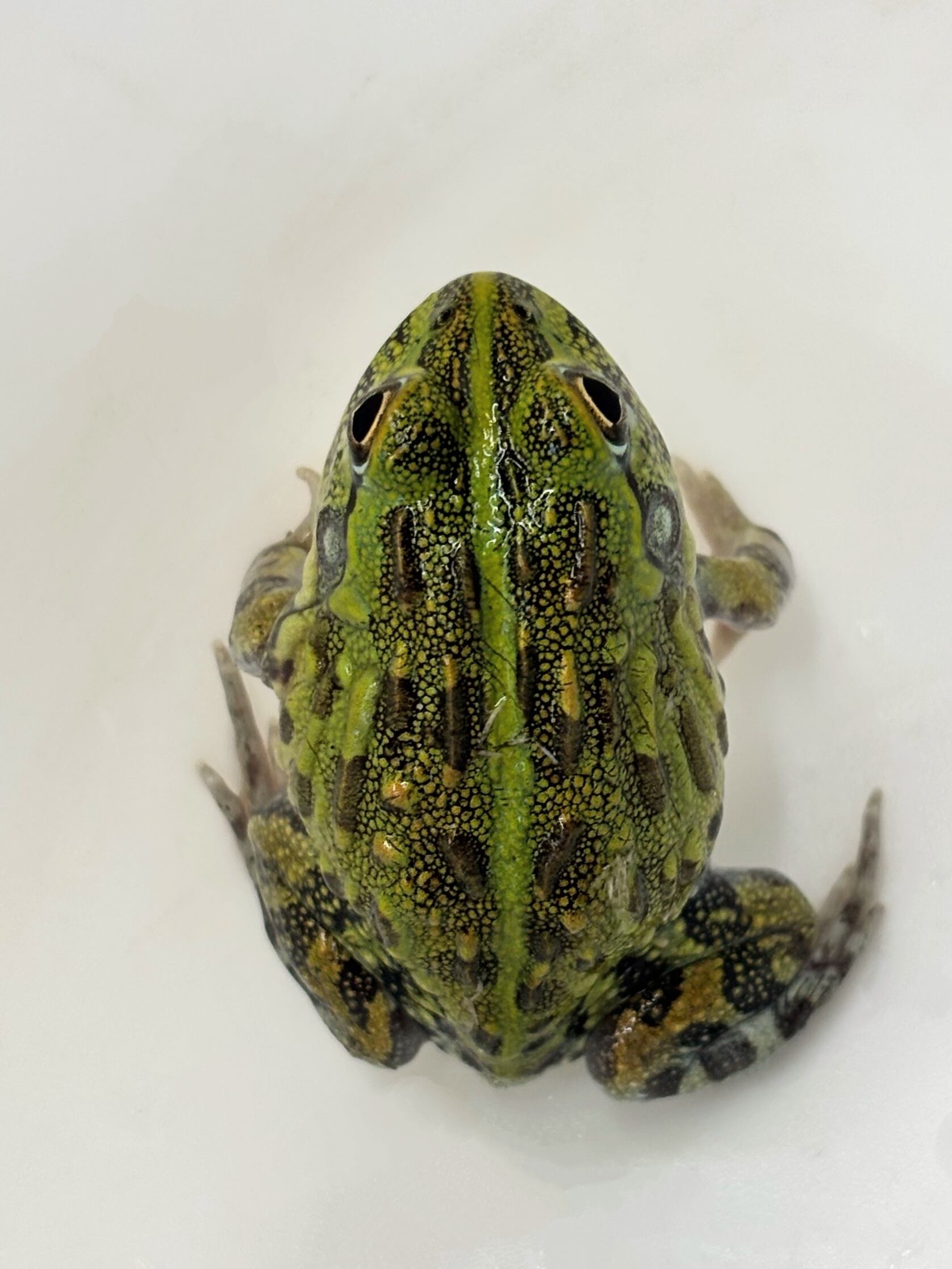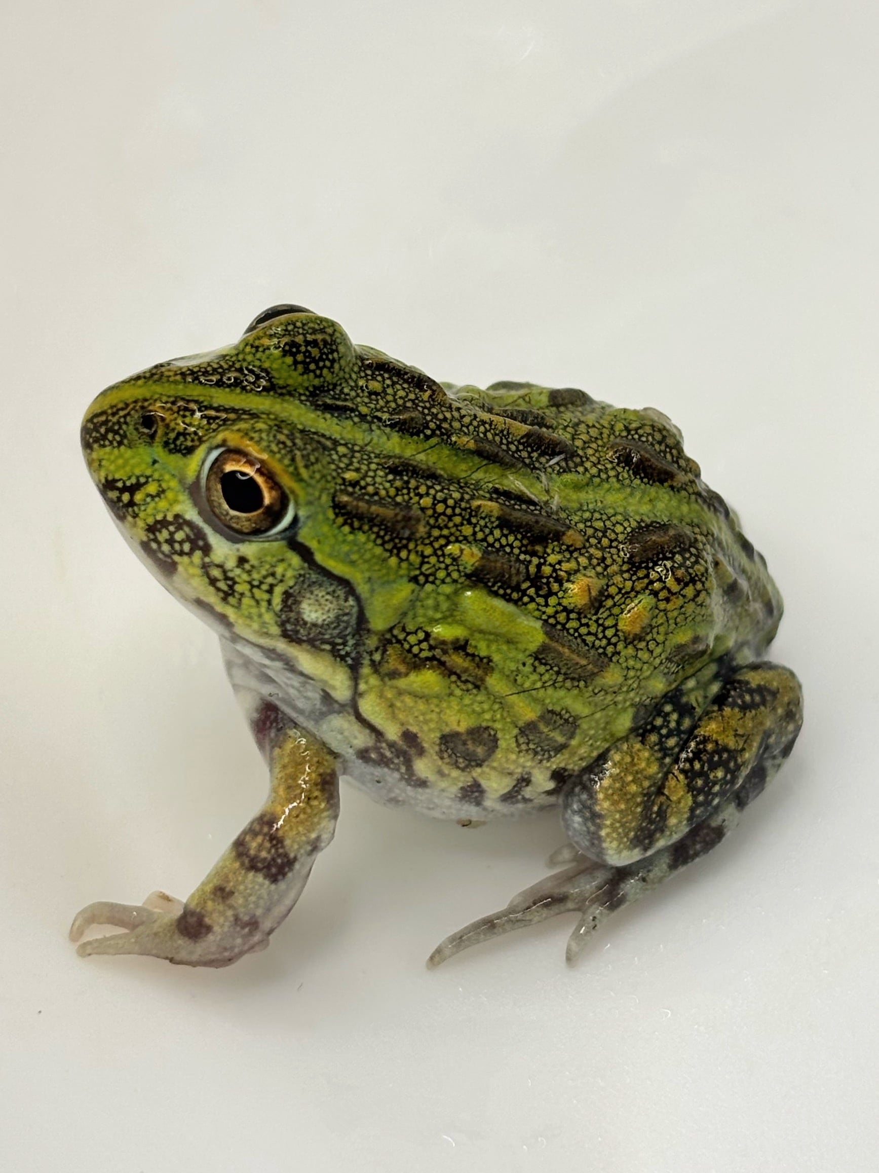 小さい時はトノサマガエルのようですが、大きくなるとオリーブグリーンの体になり、何気に色も美しいです。現地ではサバンナに生息しているので、湿った場所と乾いた場所を作ると調子良く飼育できます。