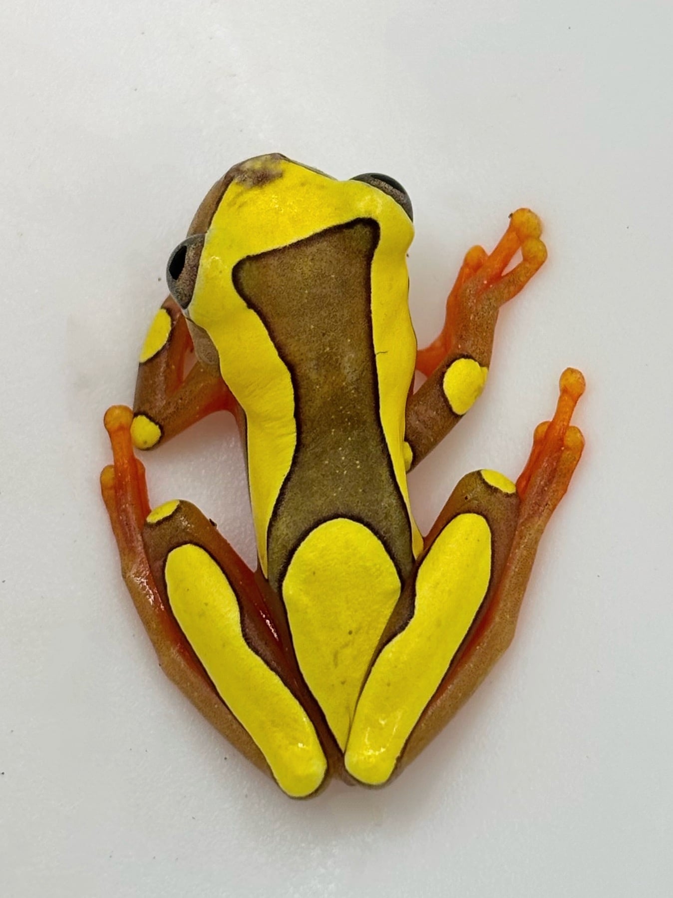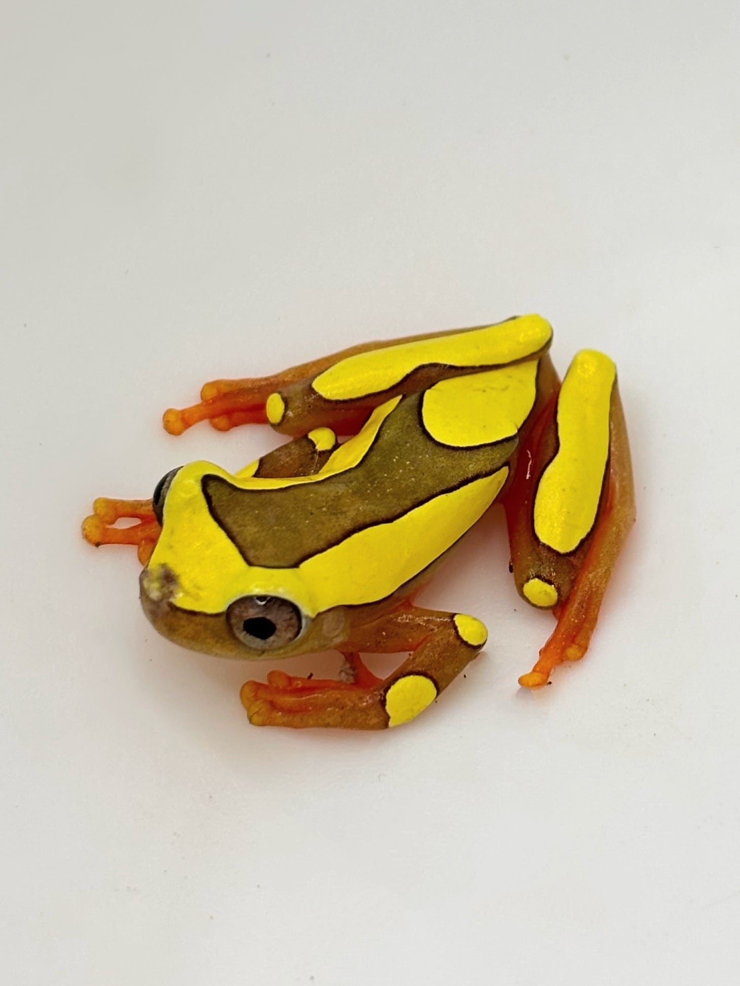 黄色く縁取られた姿が美しい樹上性の小型ガエル。