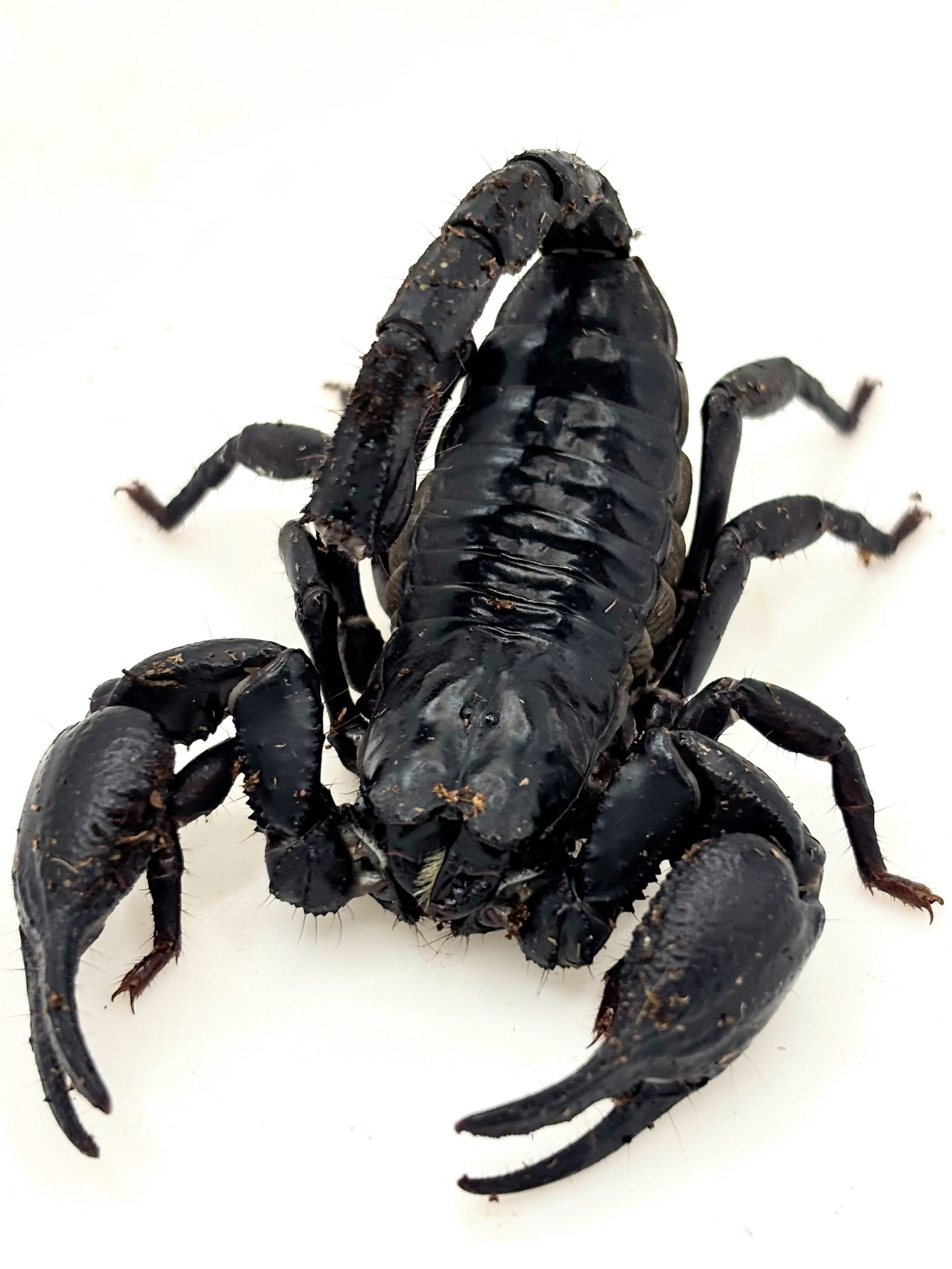 アジアンフォレストスコーピオンとして総称されるサソリの1種。大きさは最大で全長約15cm。