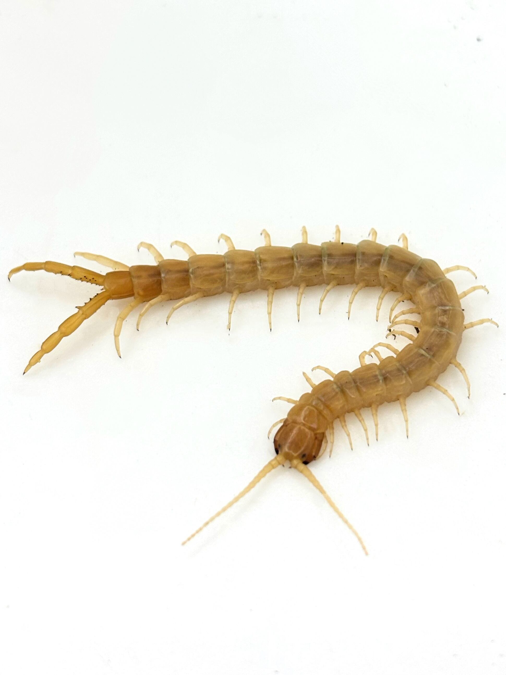 透き通ったベージュの体色が美しい、透け感のあるムカデ。