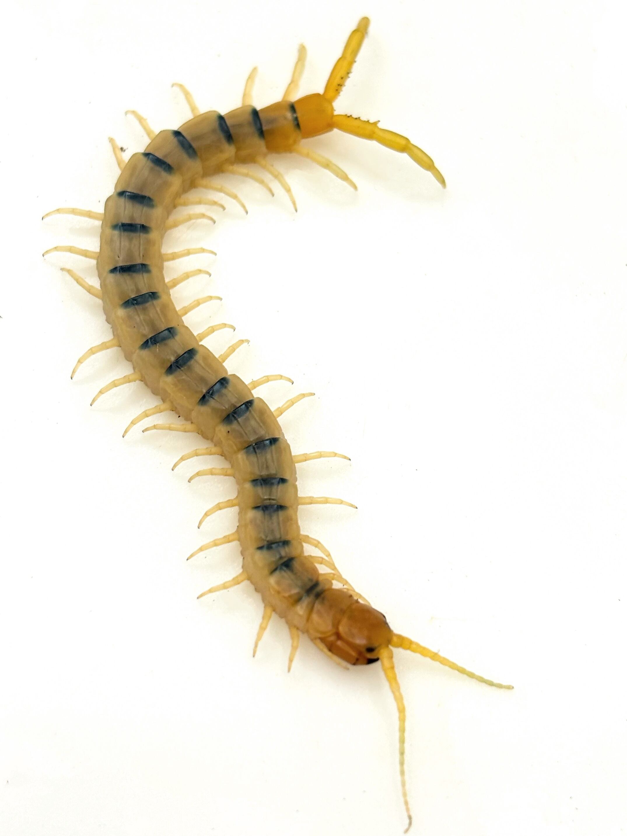 透き通ったベージュの体色が美しい、透け感のあるムカデ。