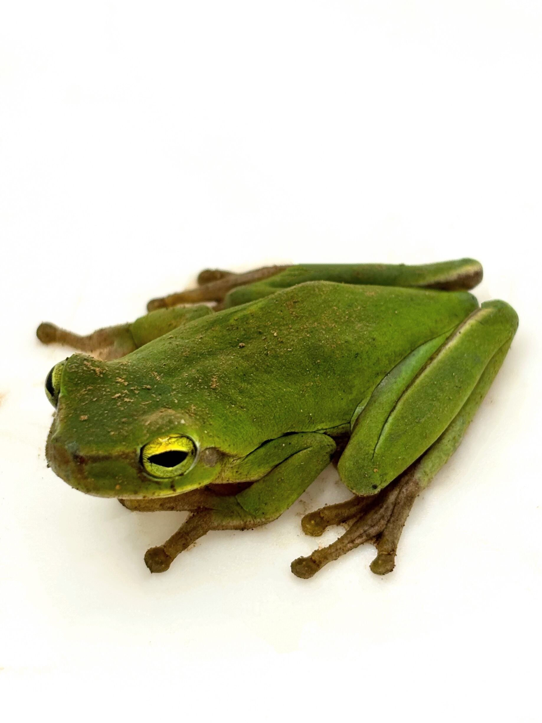 沖縄本島に生息するアオガエル。大きさは最大でオスが約5cm、メスが約7cm。