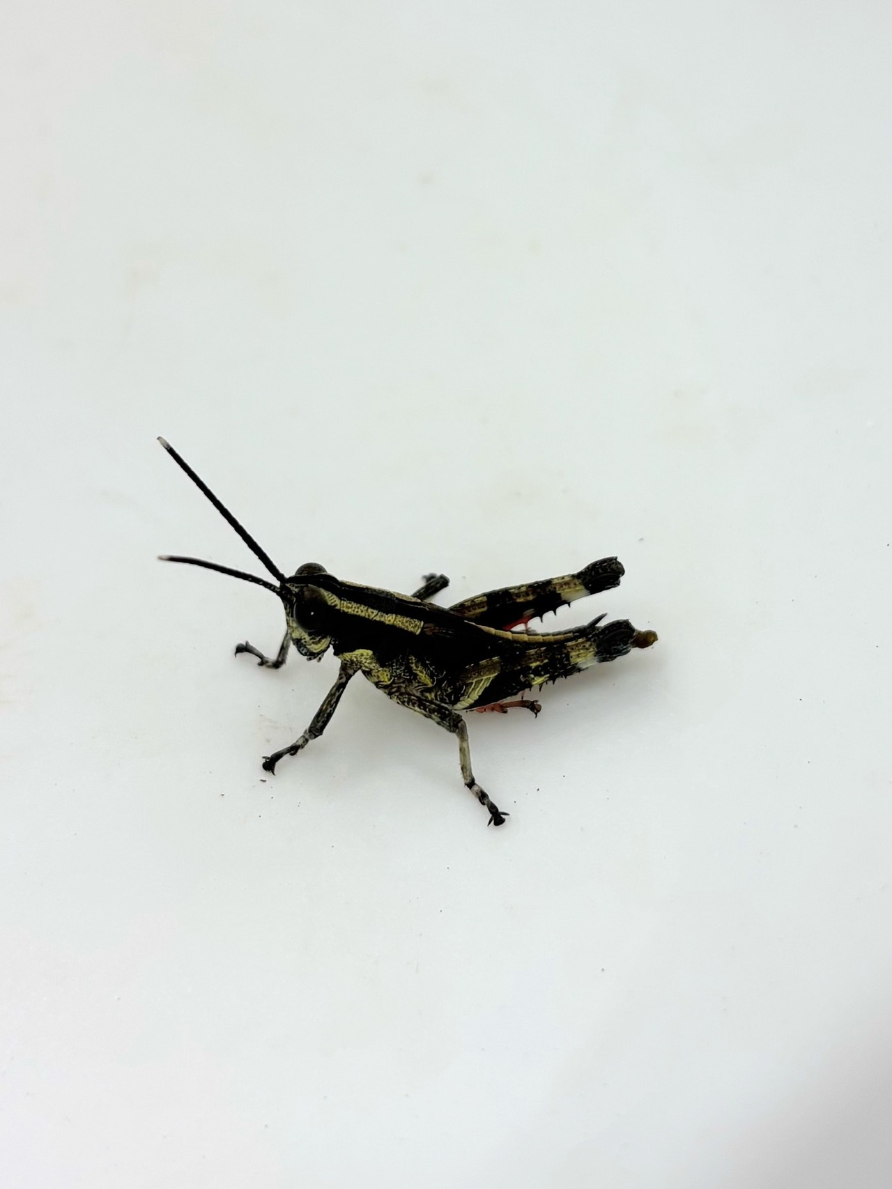 西表島に生息する美しいバッタ。大きさはオスが体長約2cm、メスが体長約4cm。