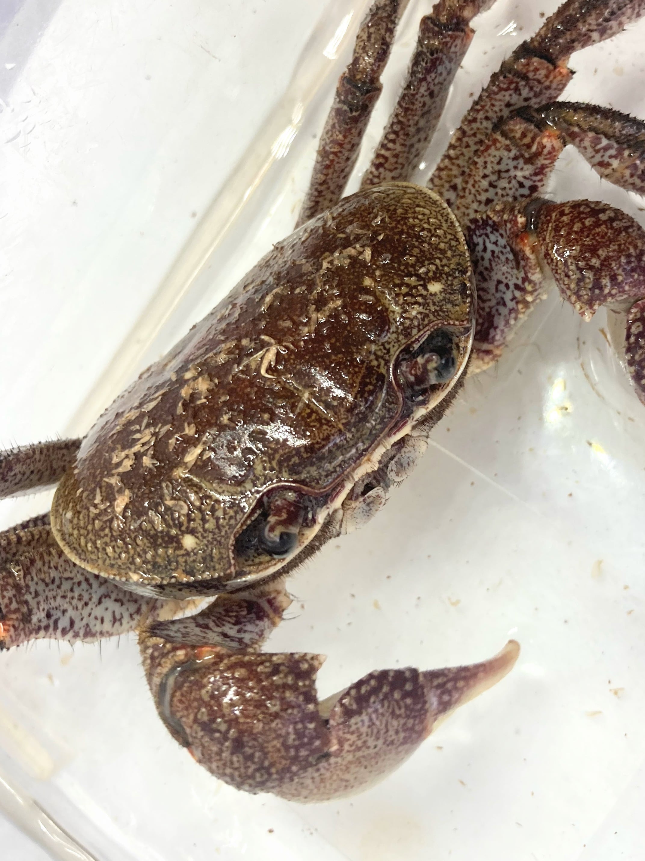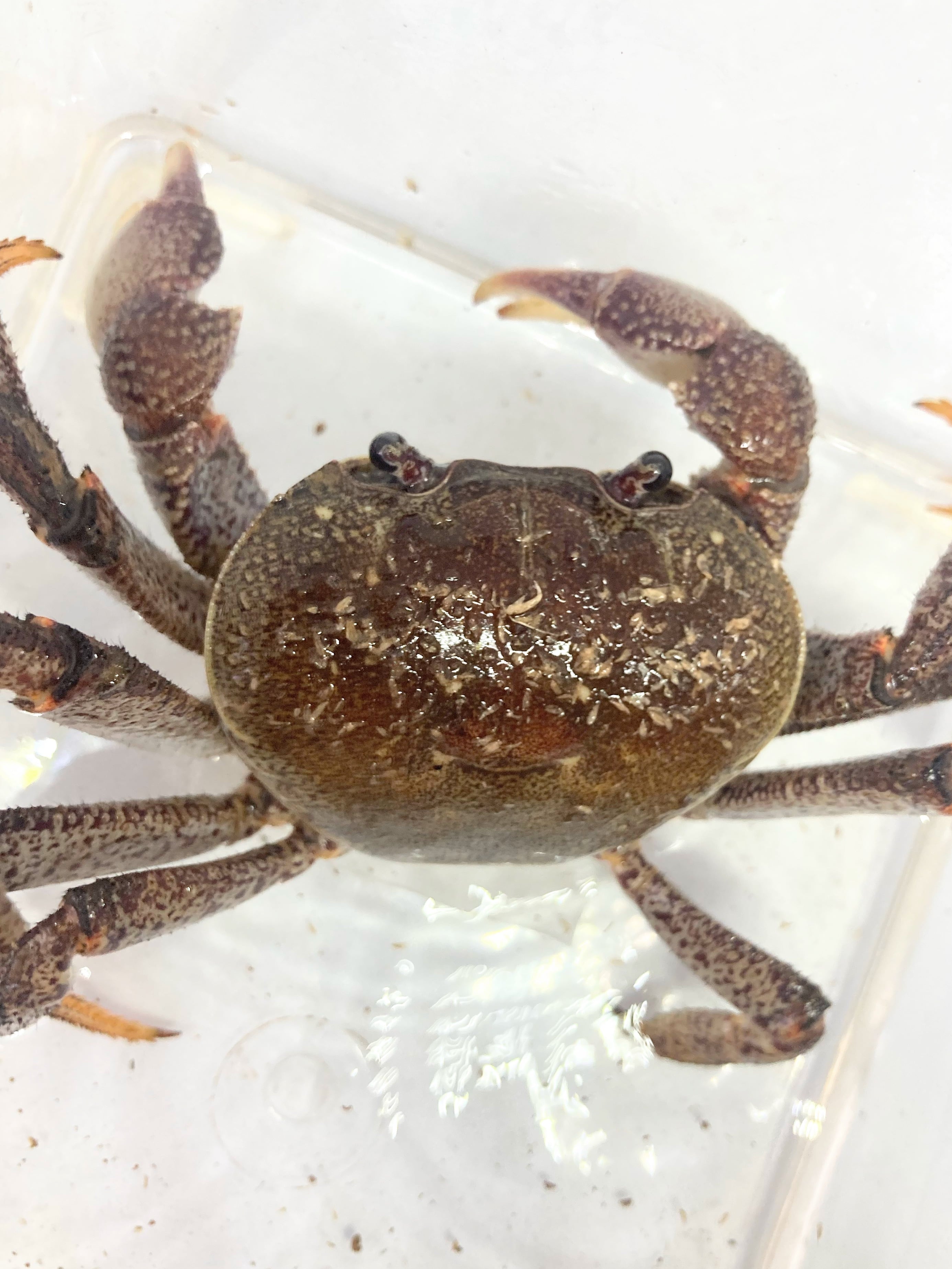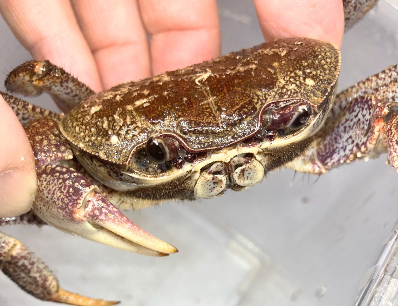 南方の島々の海岸沿いに生息する中型のカニです。最大全長は甲長6cmくらい。