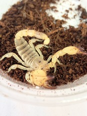 北アフリカに生息する黄色いサソリ。最大全長は8cmくらいの中型サソリ。