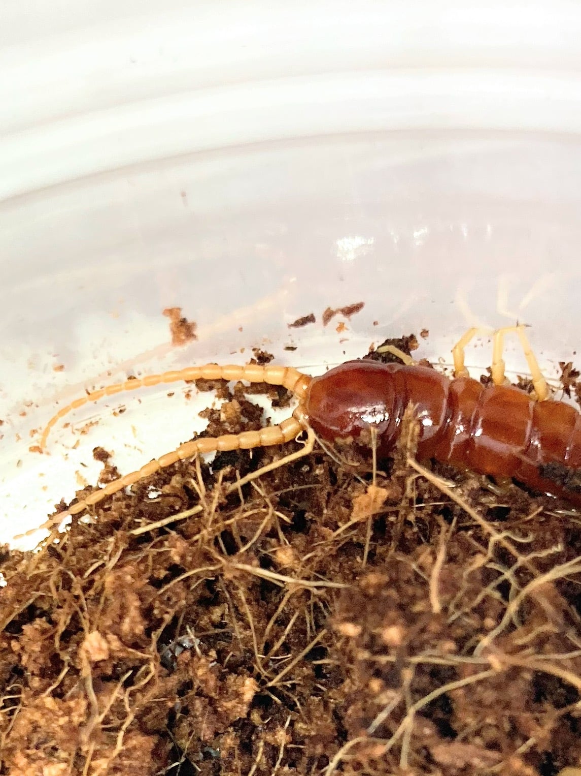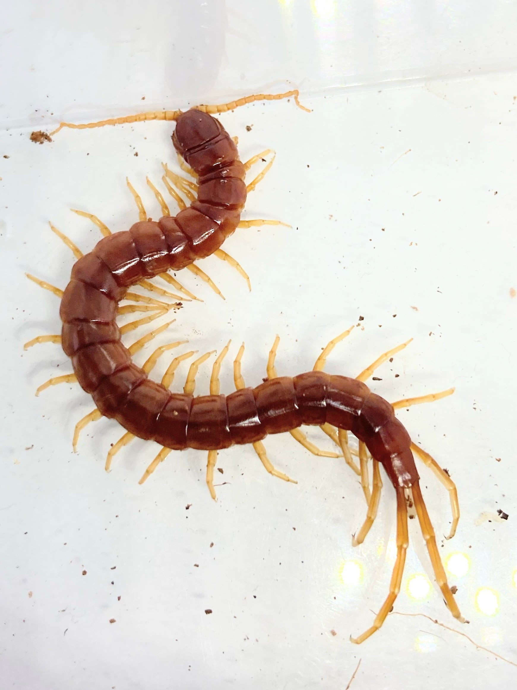 ボディ全体が渋い赤白に染まるアカムカデの一種です。