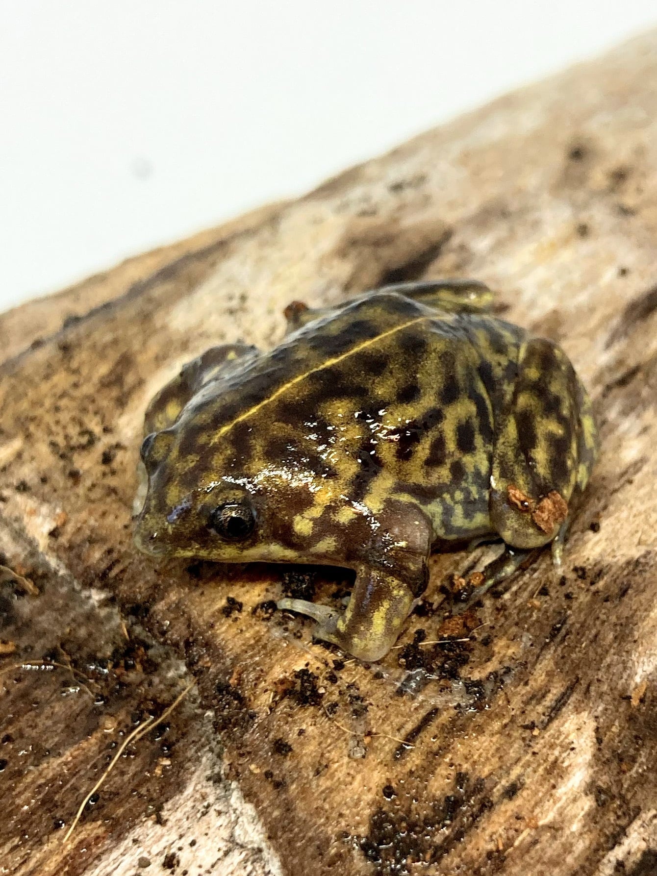 乾燥した地域に生息するカエルですので、乾かし気味にし、体の入る水入れを設置してください。口が小さいので、餌は小型のコオロギやローチを与えてください。