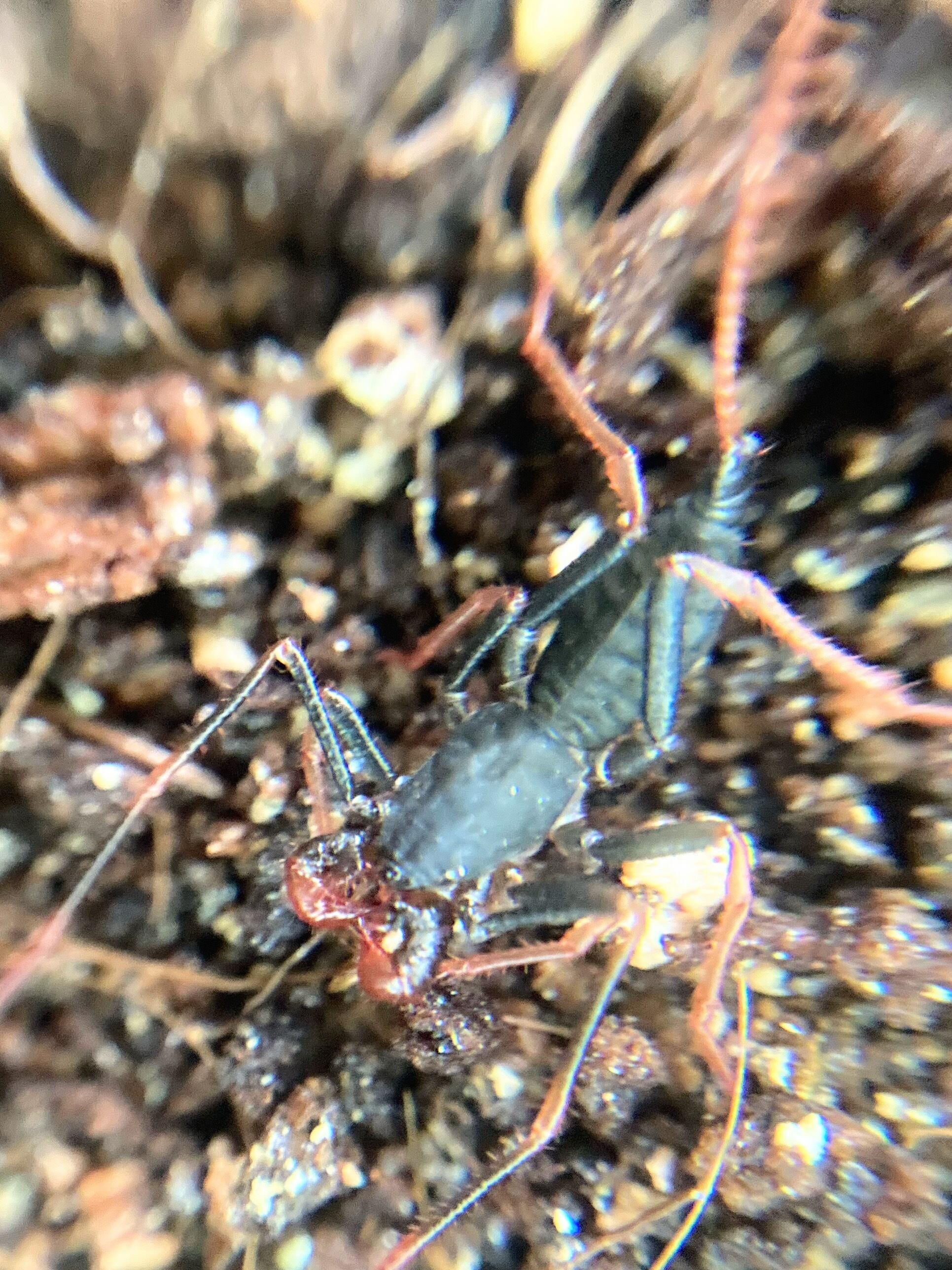 サソリモドキらしい黒いボディにうっすらと脚に赤の入るサソリモドキ。