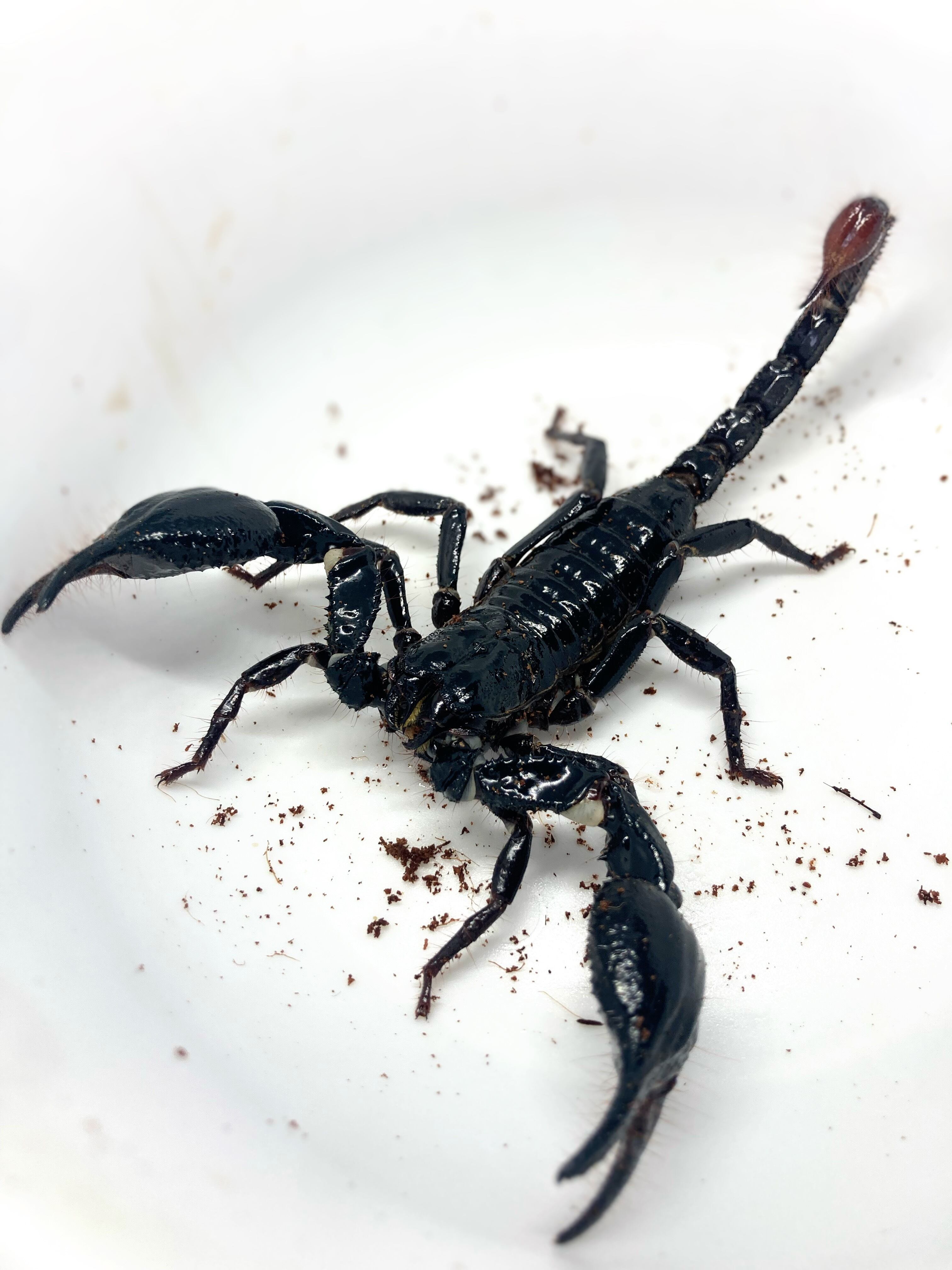 一般的なアジアンフォレストスコーピオンの中でハサミが長く、角張っているのが特徴です。