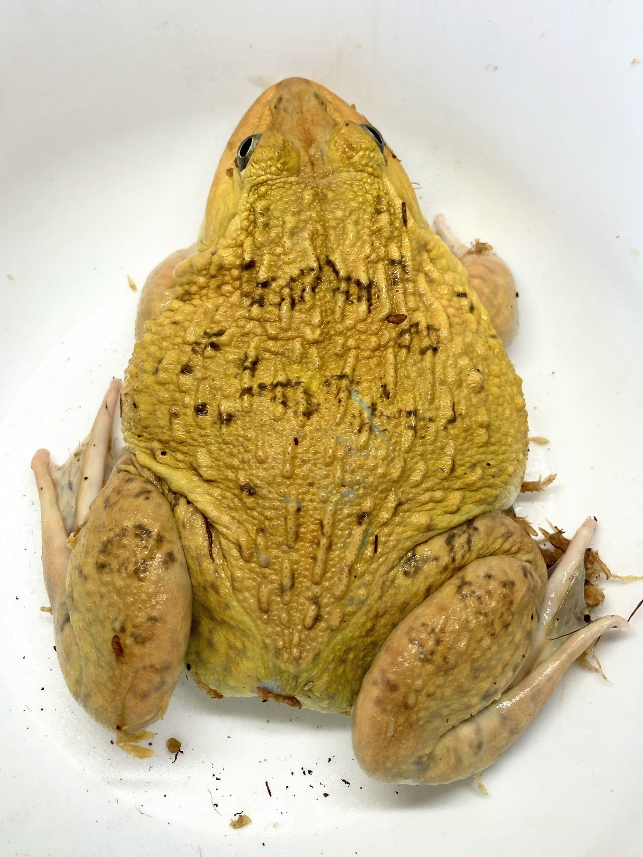 東南アジアで食用として養殖が盛んに行われているカエルです。